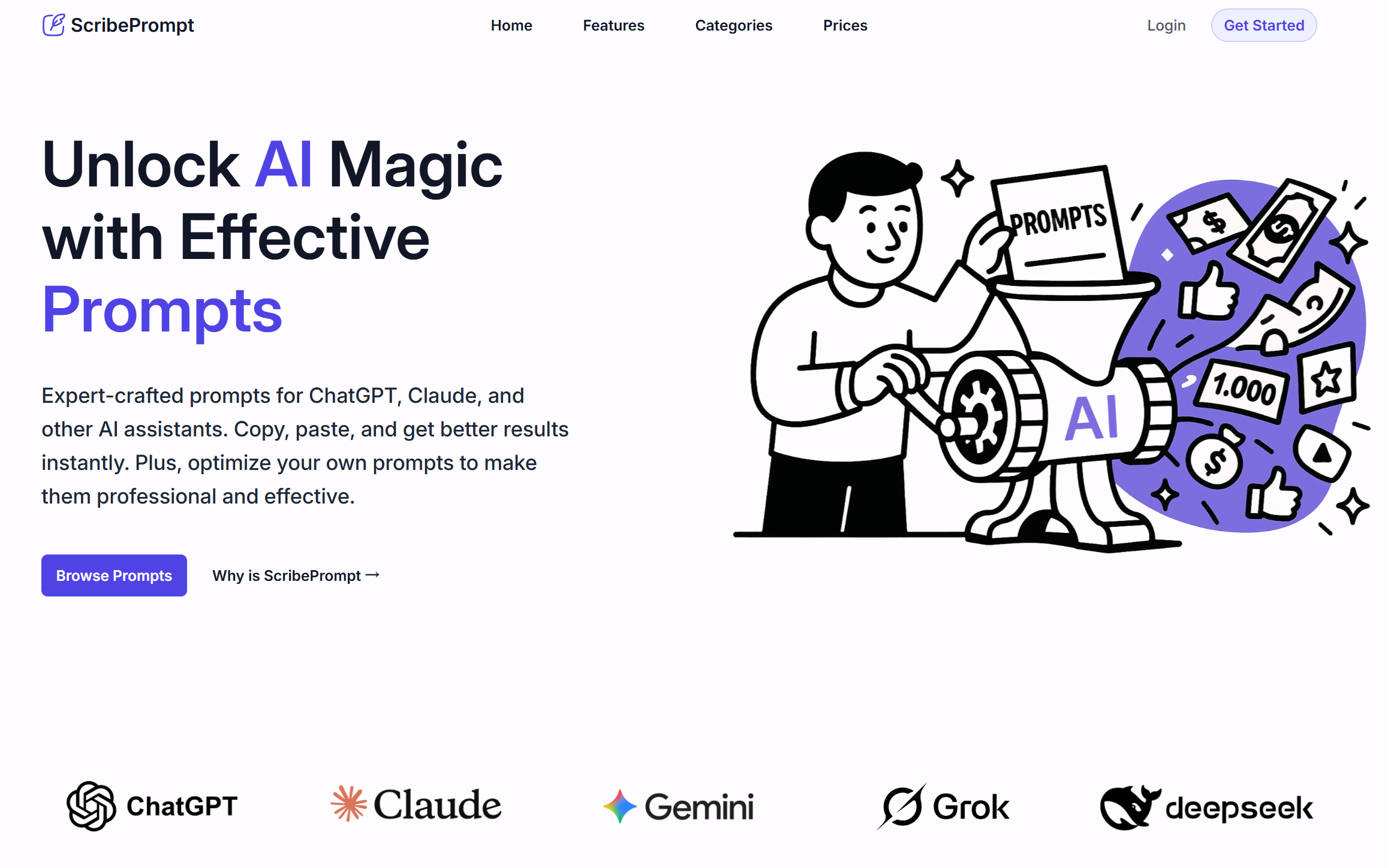 ScribePrompt是一款帮助用户组织、优化和保存Prompt的在线工具,提供结构化Prompt、保存功能、清晰度建议和模板,旨在提升Prompt写作效率。