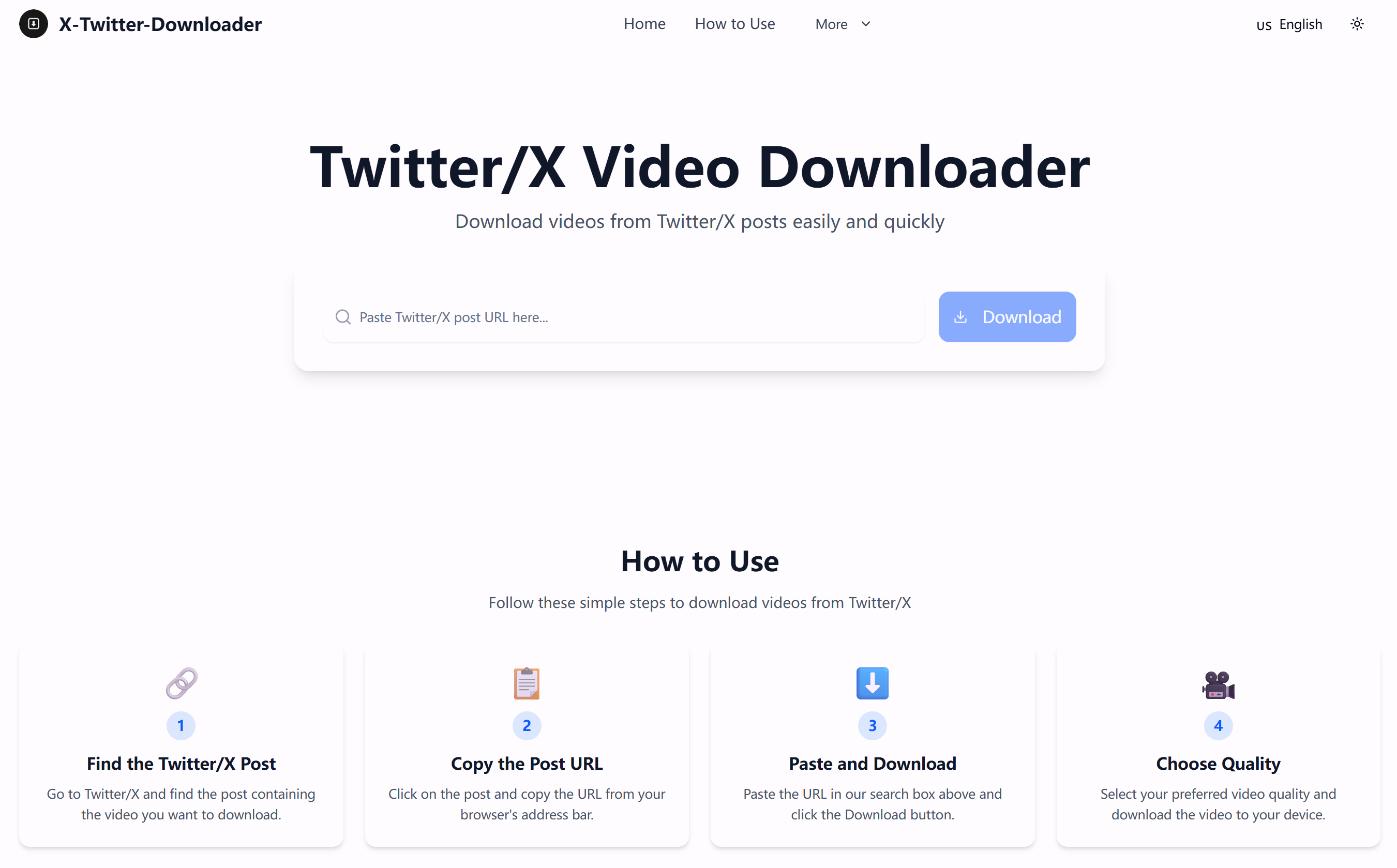 X downloader视频下载站是一款视频下载工具,通过复制推文链接获取不同清晰度的视频。