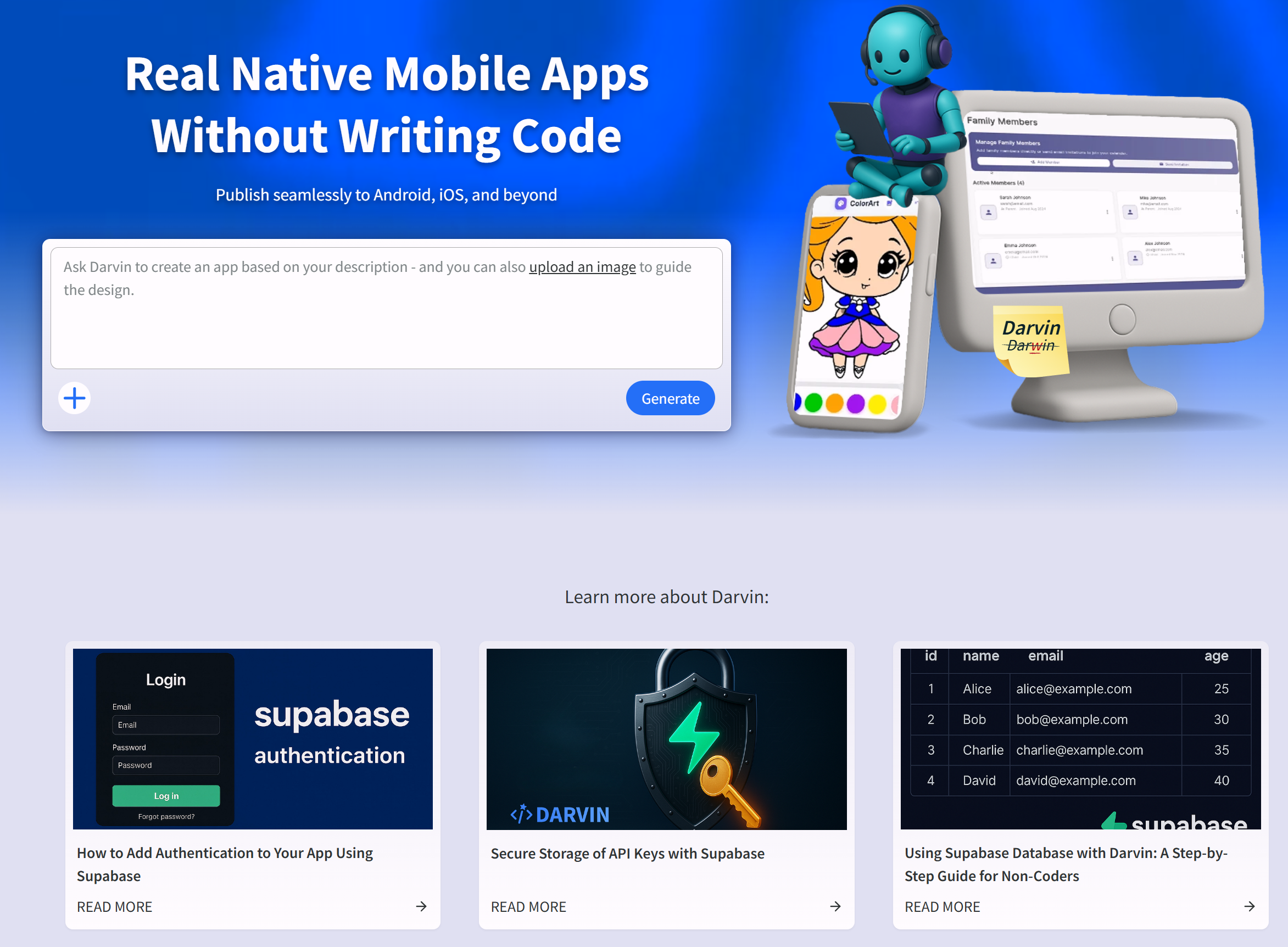 Darvin.dev是一款AI原生构建器,用户可以通过简单的英文提示在几分钟内生成功能齐全的移动应用。