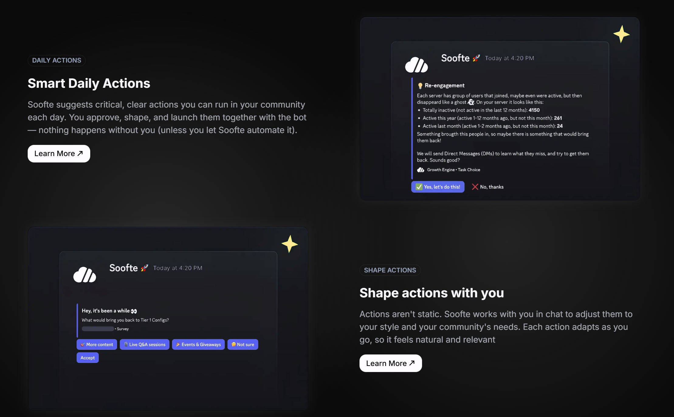 Soofte是一款AI社区助手,通过日常行动提升社区的参与度、留存率、收入和重新激活。