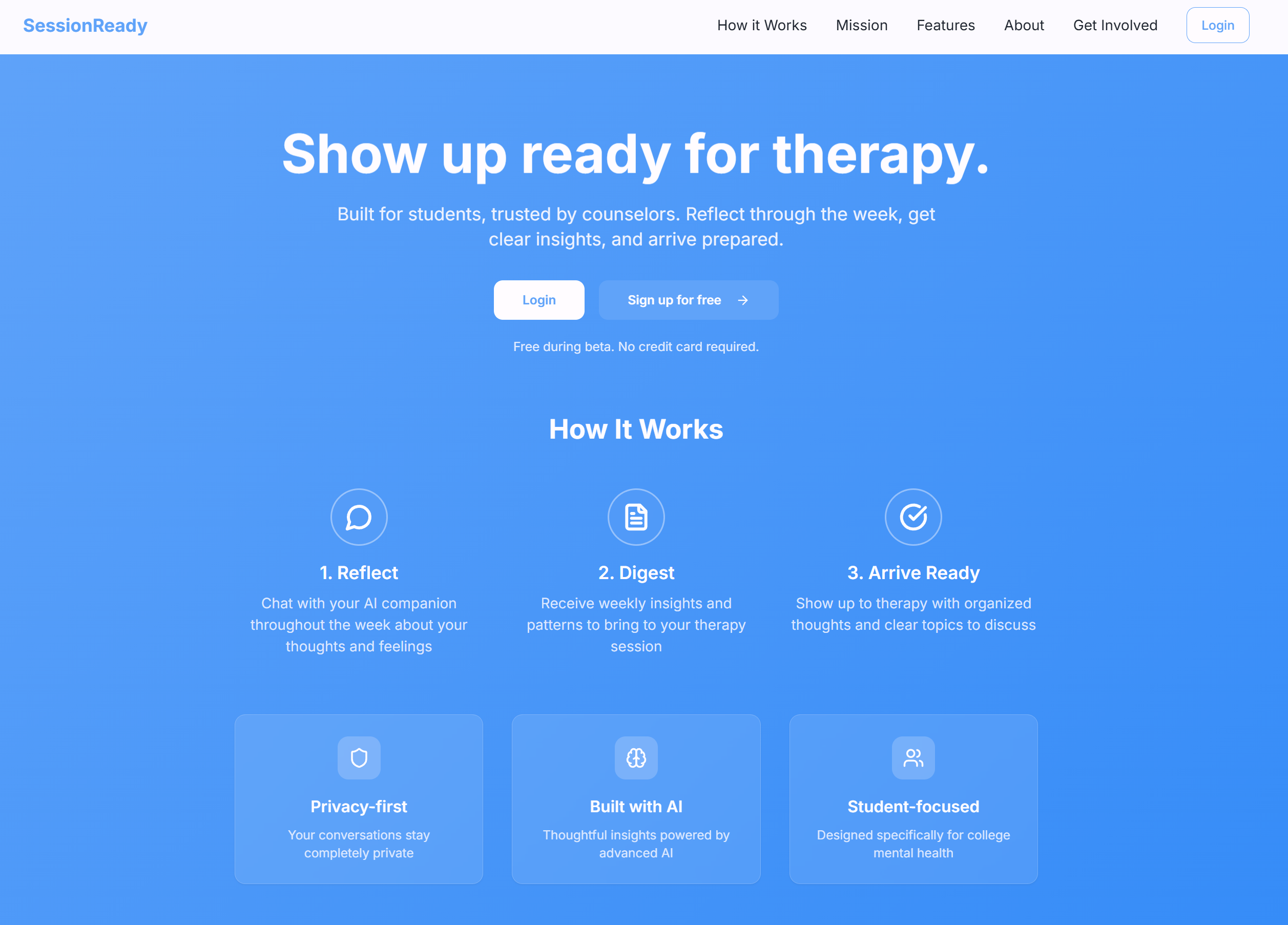 SessionReady是一款帮助人们更好地利用治疗课程的工具,允许用户记录笔记并生成可带到治疗会话的摘要。