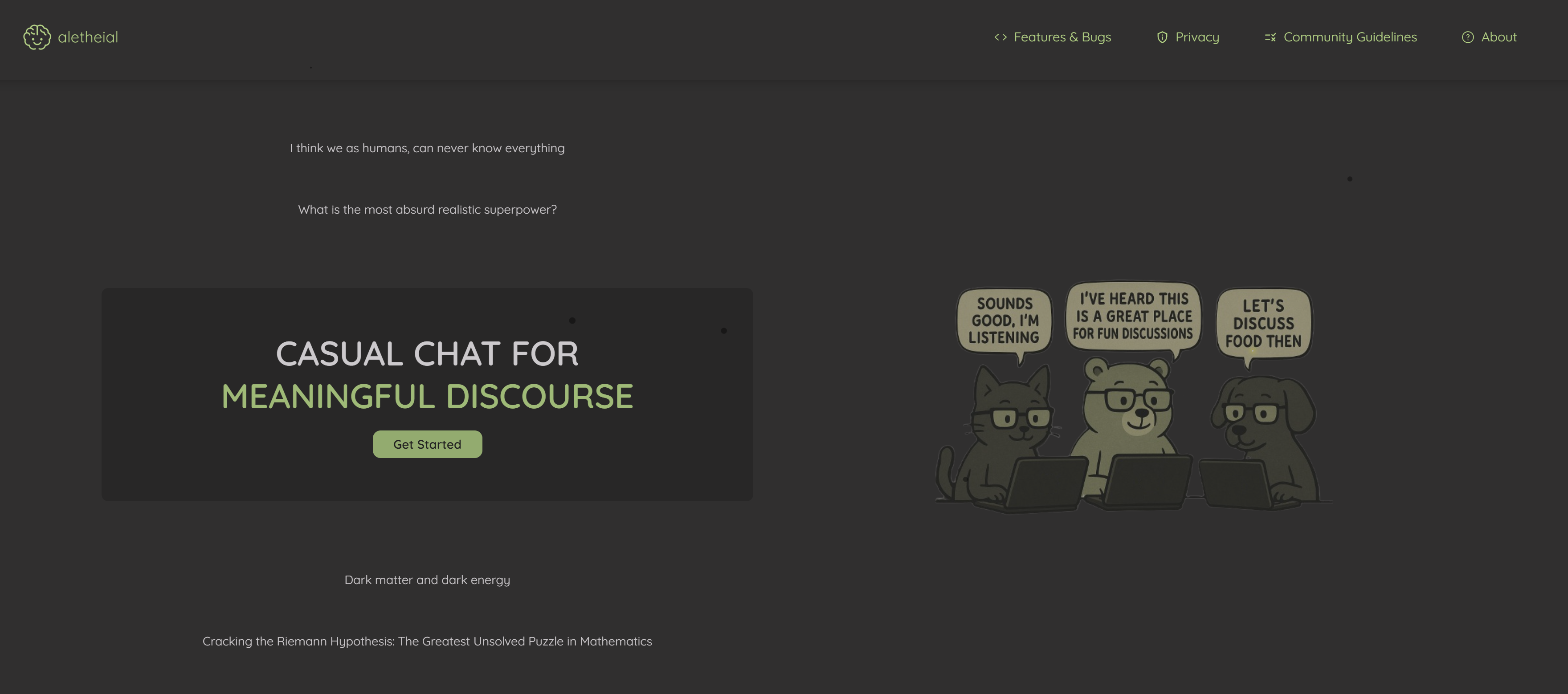 Aletheial是一款快速聊天网站,提供一个可以立即与陌生人聊天的环境,避免巨魔和信息过载。