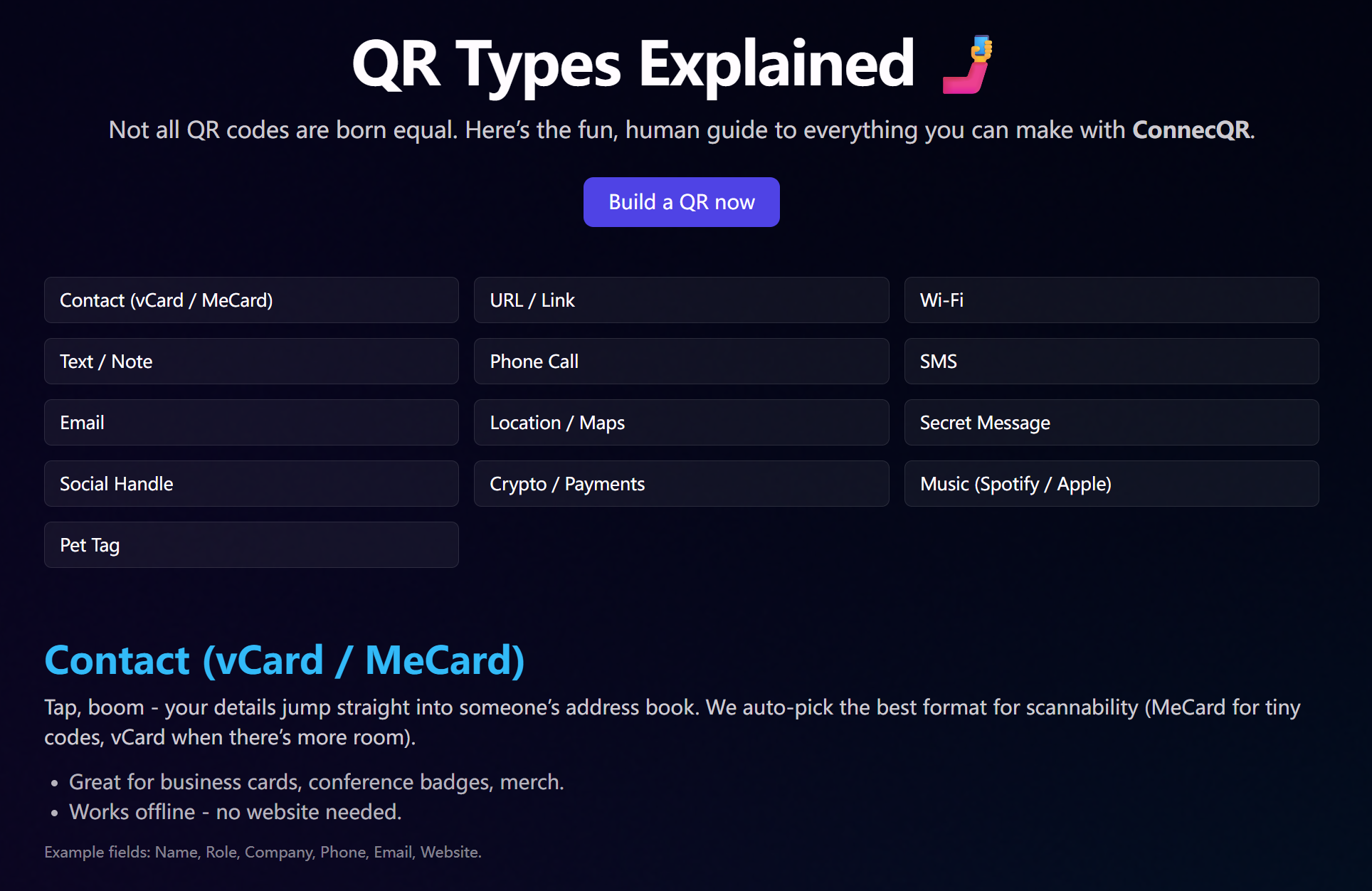 ConnecQR是一款免费的数字名片和二维码设计工具,提供多种设计和自定义选项,无需注册,界面友好。