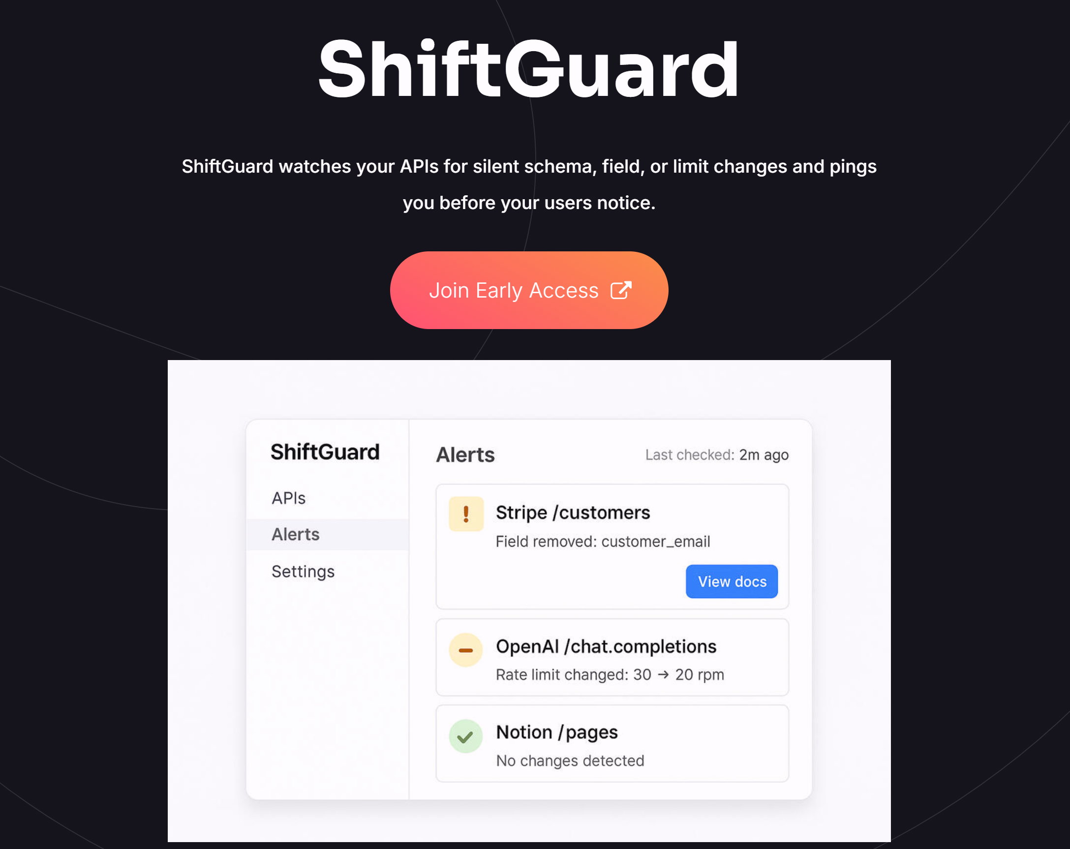 Shiftguard是一款轻量级API监控工具,能够在API变更导致生产环境错误前发送警报。