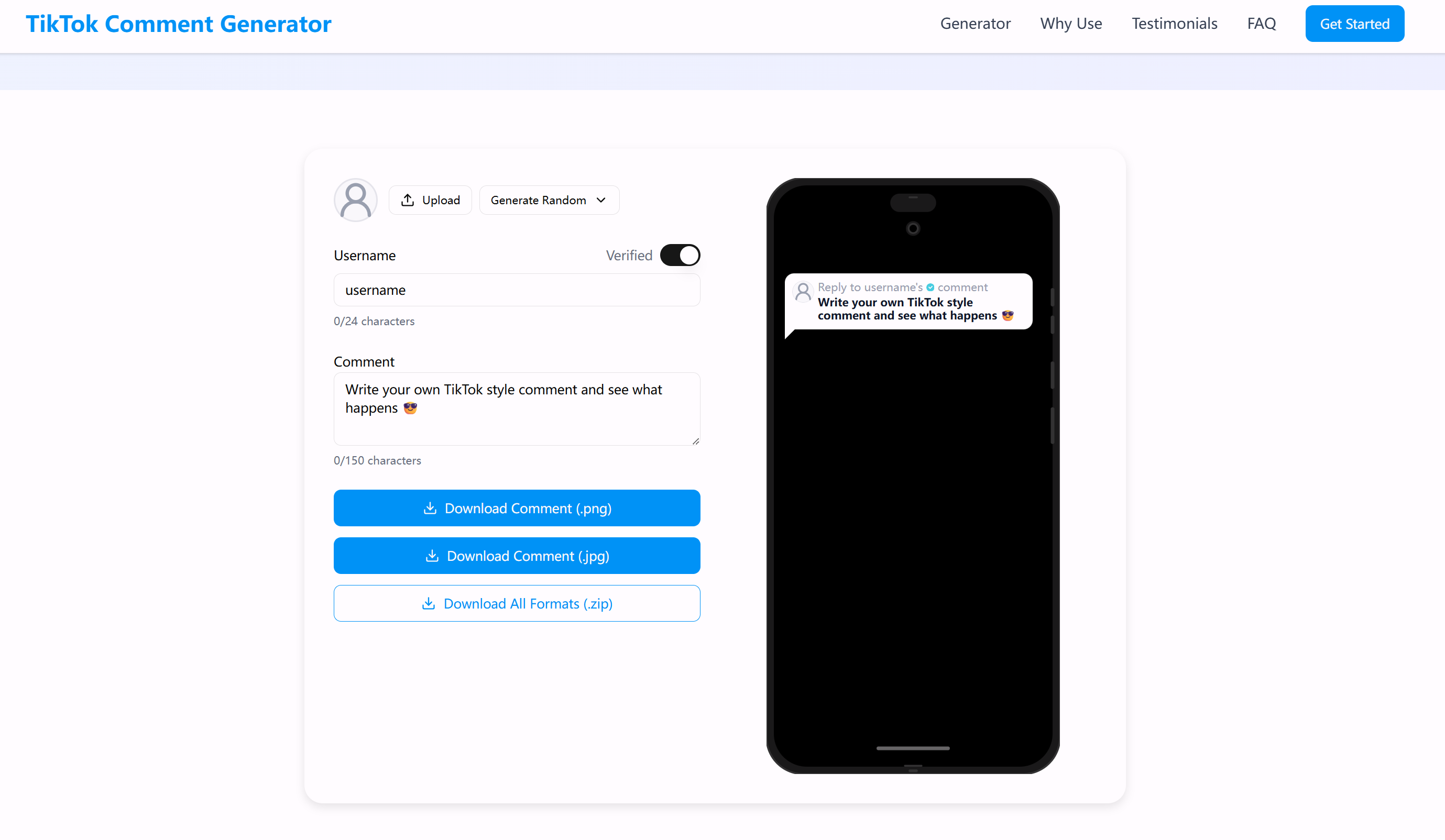 TikTok Comment Generator是一款评论生成工具,仿照TikTok评论区样式生成评论截图,方便用户进行社交媒体运营配图或内容包装。