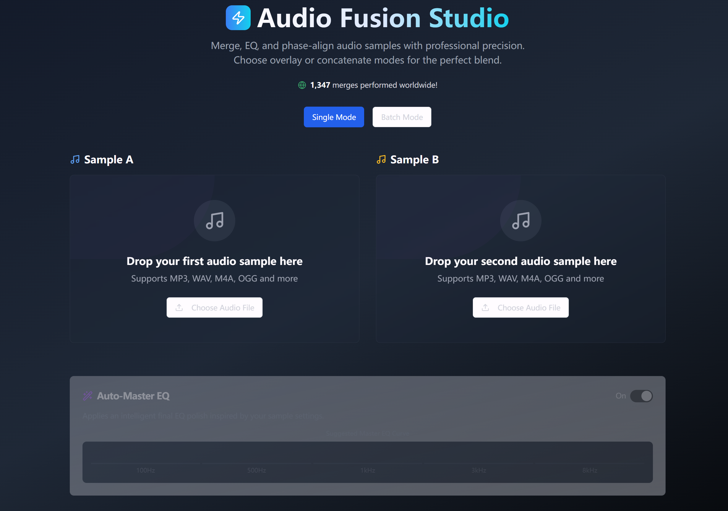 audio fusion是一款在线音频处理工具,无需安装即可融合两个音频样本或音效。