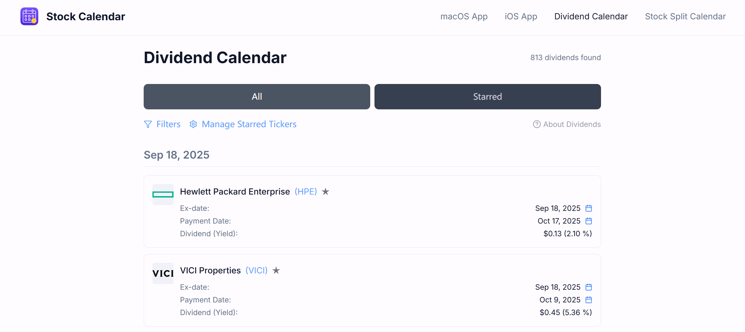 Dividend Calendar是一款股息日历应用,支持iOS平台,提供即将到来的股票分拆信息,并允许用户自由访问网页版数据。