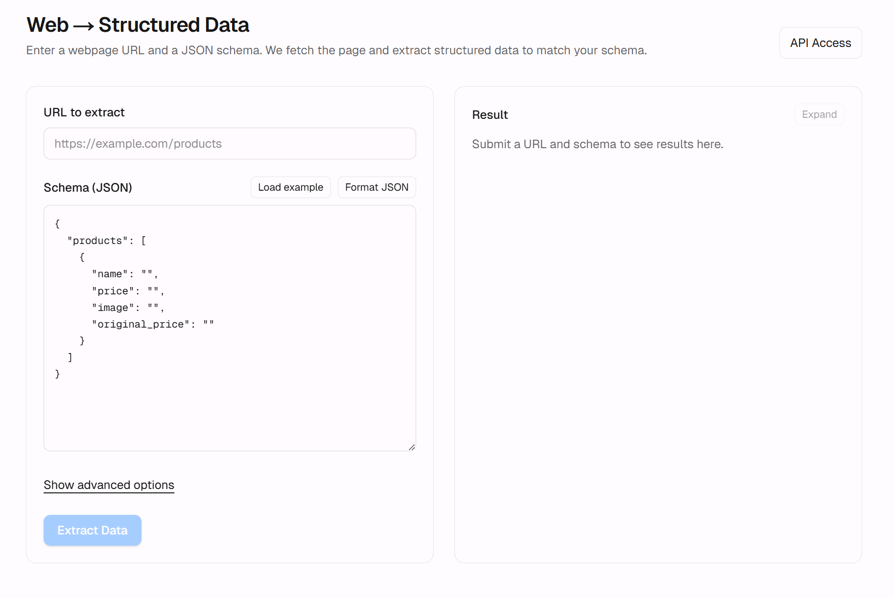 Curatle是一款网页数据提取工具,能够将任何网页URL转换为用户指定结构的JSON数据,支持提取电商产品、招聘信息和博客文章等内容。