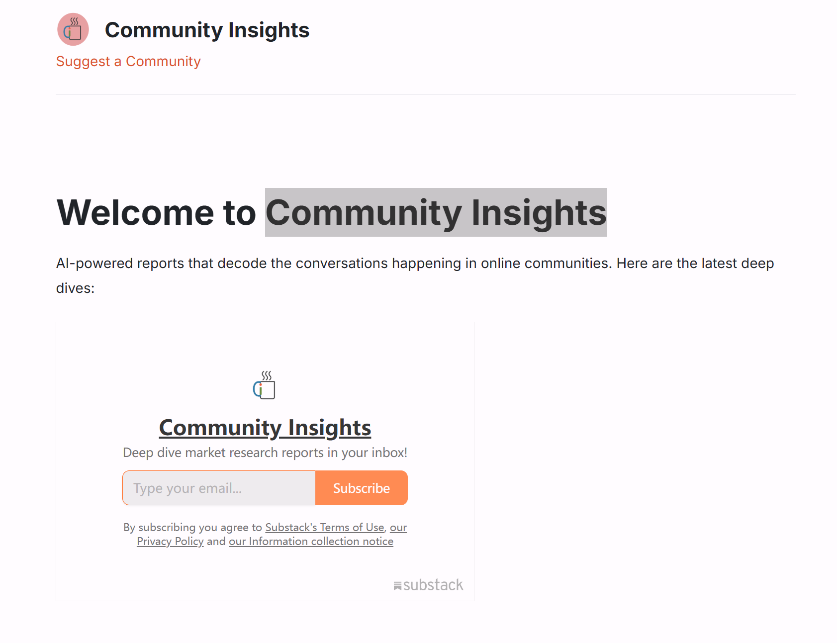 Community Insights是一款分析工具,识别用户在AI代理可靠性、API成本控制、No-Code数据处理和Solopreneurs社交孤立等方面的痛点,提供详细的产品和服务创意。