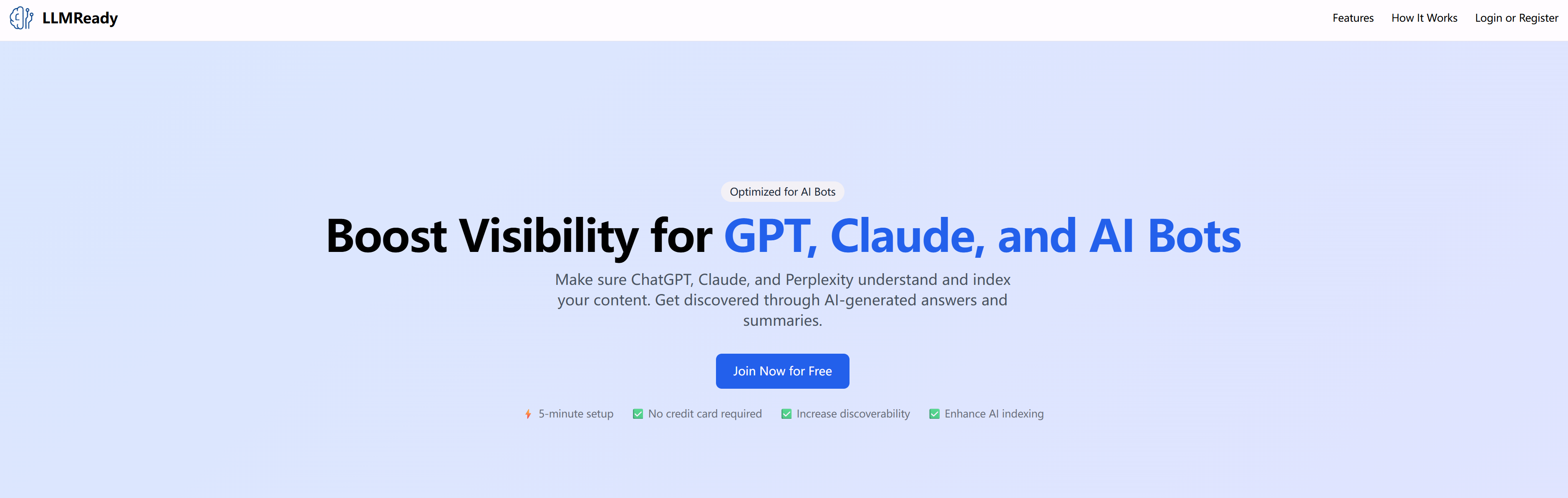 LLMReady是一款网站优化工具,帮助网站追踪和优化在AI爬虫和LLM中的表现,提供Snippet跟踪、更新信号和流量分析等功能。