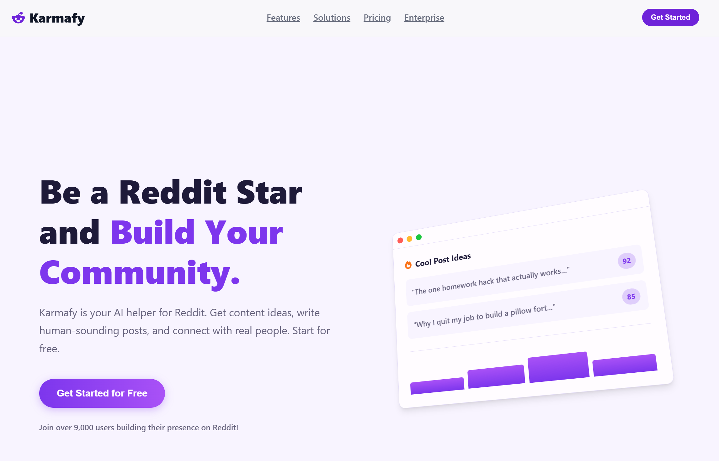 karmafy是一款帮助用户在Reddit上提升曝光度、建立品牌和实现病毒式传播的工具,提供最佳发帖时机和内容优化建议。
