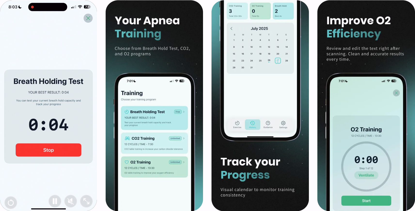 BreatheDeep是一款iOS应用,旨在帮助用户训练呼吸、提高肺活量和呼吸控制能力,基于呼吸暂停表的引导课程和详细的会话统计。