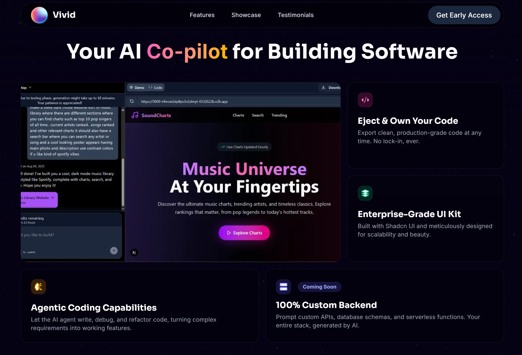 Vivid是一款AI驱动的开发环境,能够根据提示快速生成生产级别的全栈软件,支持导出可扩展代码、生成API和后端,适合学生、独立开发者和创业者。