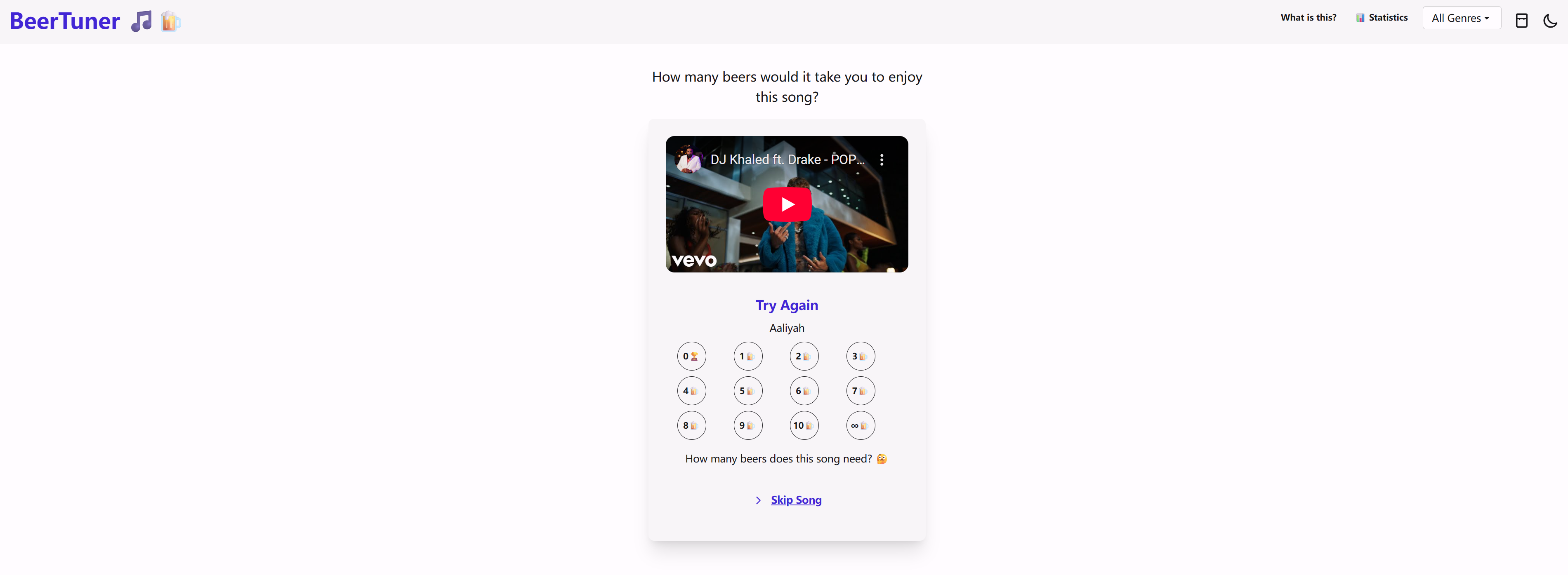 BeerTuner是一款PWA应用,用户可以根据需要饮酒的数量来评价歌曲,包含293首经典歌曲,并提供社交分享和统计功能。