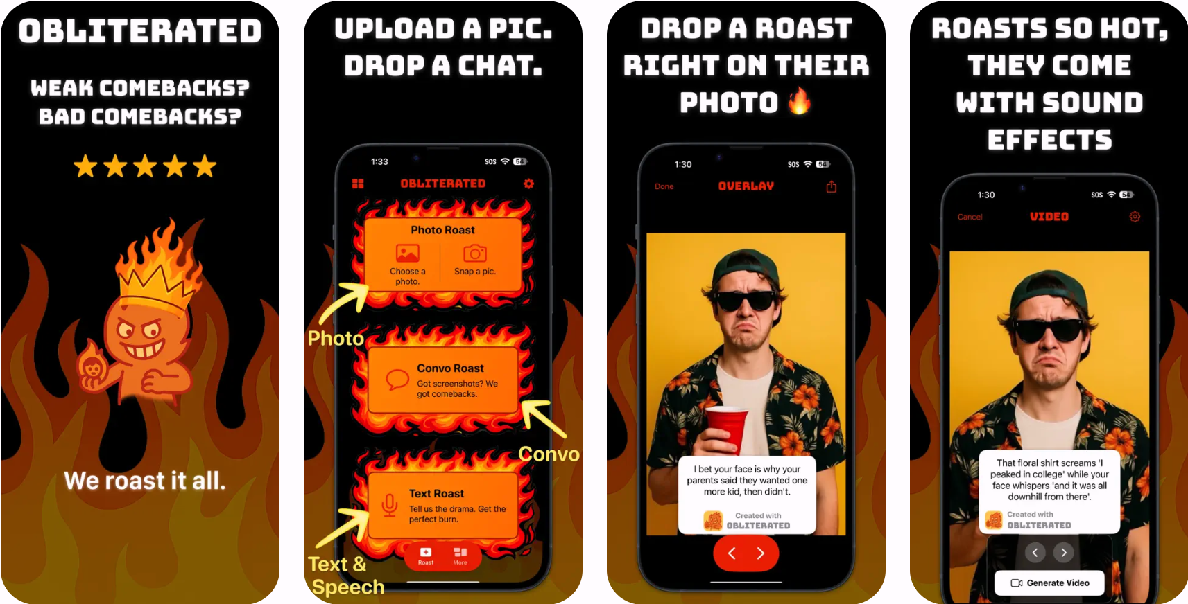 Roast Bot是一款趣味性评论应用,为照片、截图和文本添加幽默的吐槽效果,支持分享覆盖图和短视频。