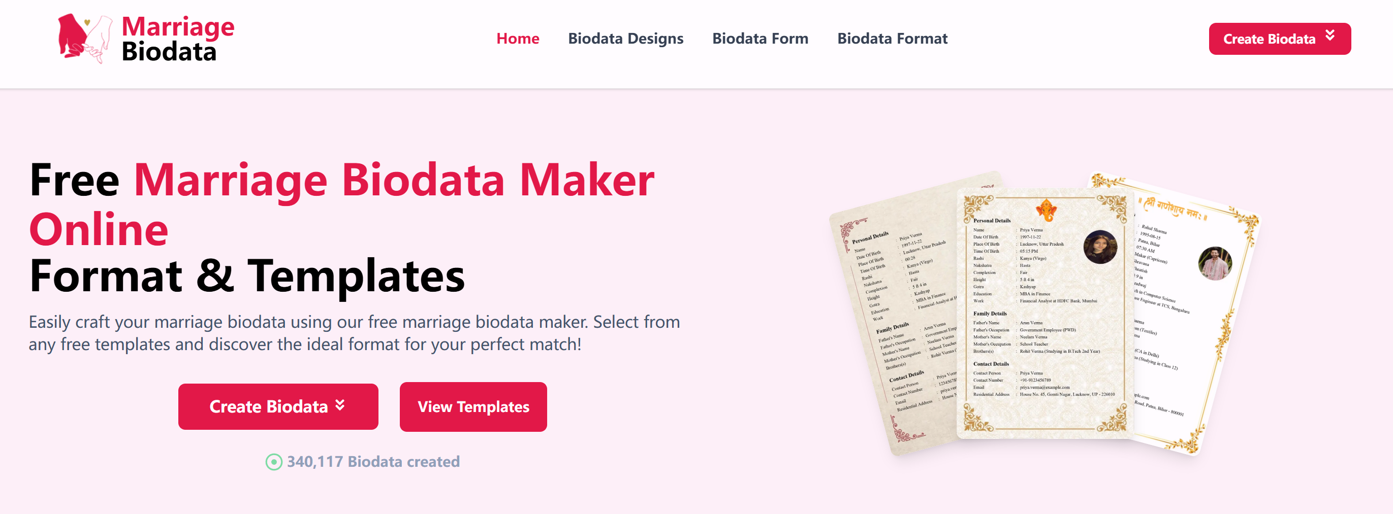 Marriage Biodata Online是一款在线婚恋简历生成工具,提供模板。