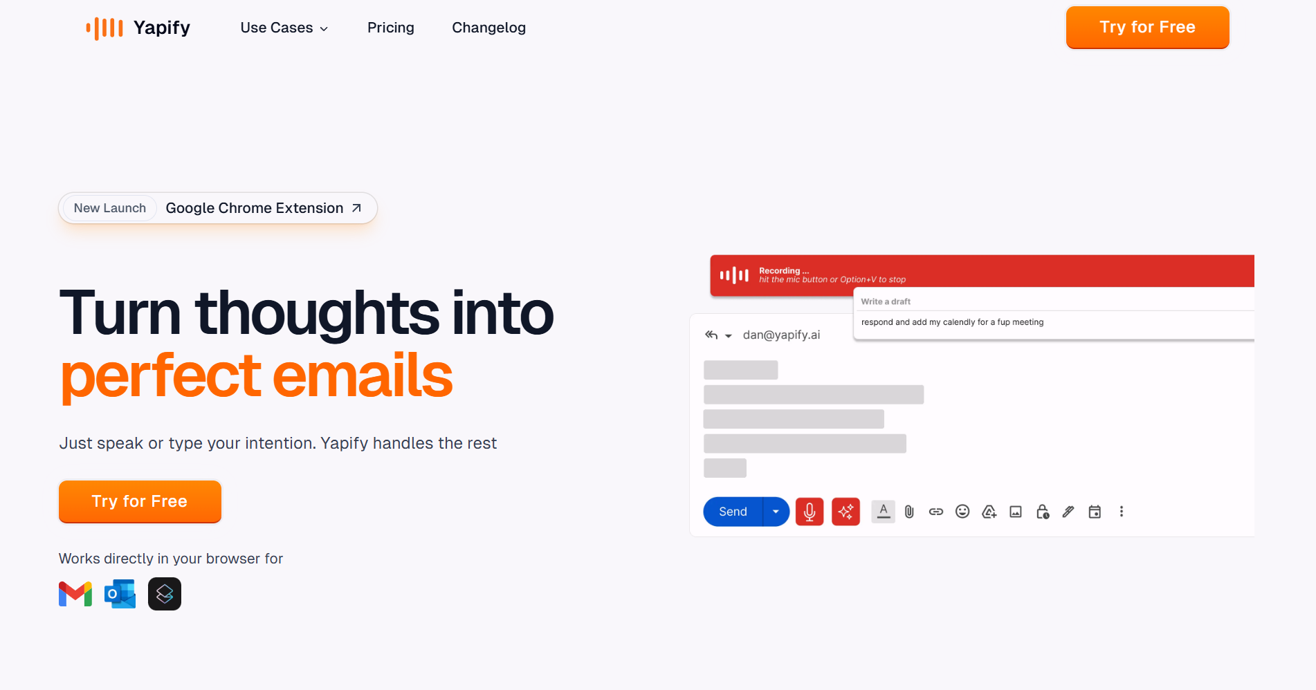 Yapify是一款语音转电子邮件工具,能够快速将语音转换为清晰、上下文相关的电子邮件,支持Gmail、Outlook和Superhuman,帮助用户更高效地整理收件箱。