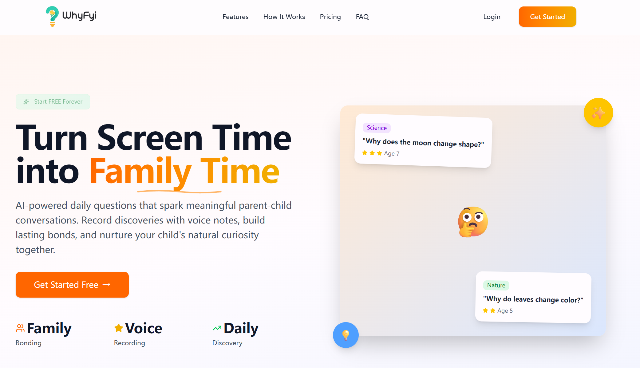 WhyFyi是一款儿童教育应用,通过AI生成个性化的“为什么”问题,旨在激发孩子的好奇心并增强亲子互动。
