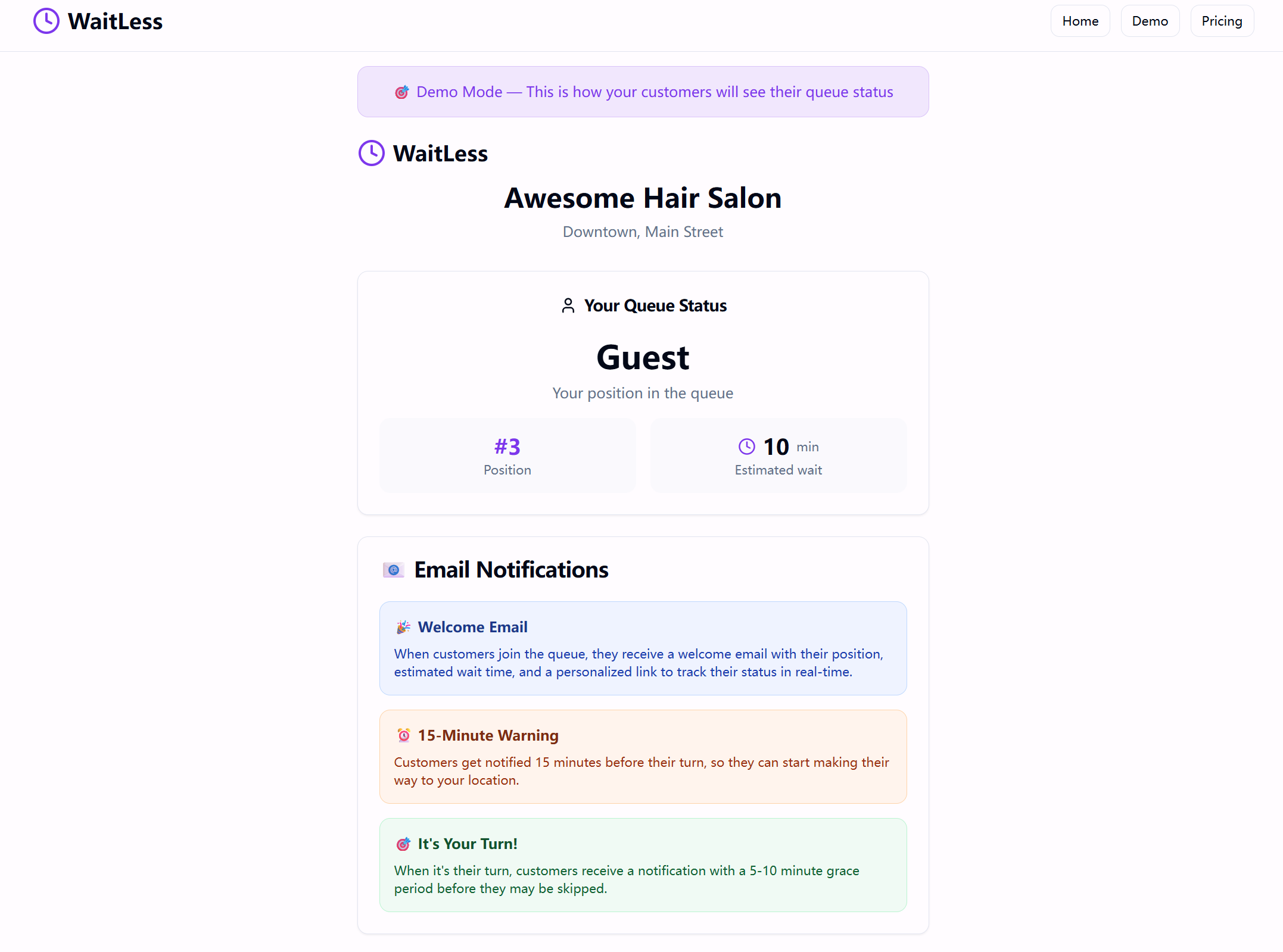 WaitLess是一款轻量级的队列管理工具,为小型企业提供实时链接和通知功能,帮助客户了解等候情况,提升客户体验。