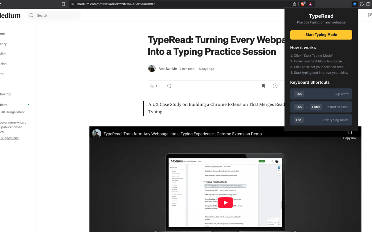TypeRead是一款Chrome扩展程序,将网页转换为无广告的阅读模式,并提供实时打字练习功能,包括速度和准确性统计。