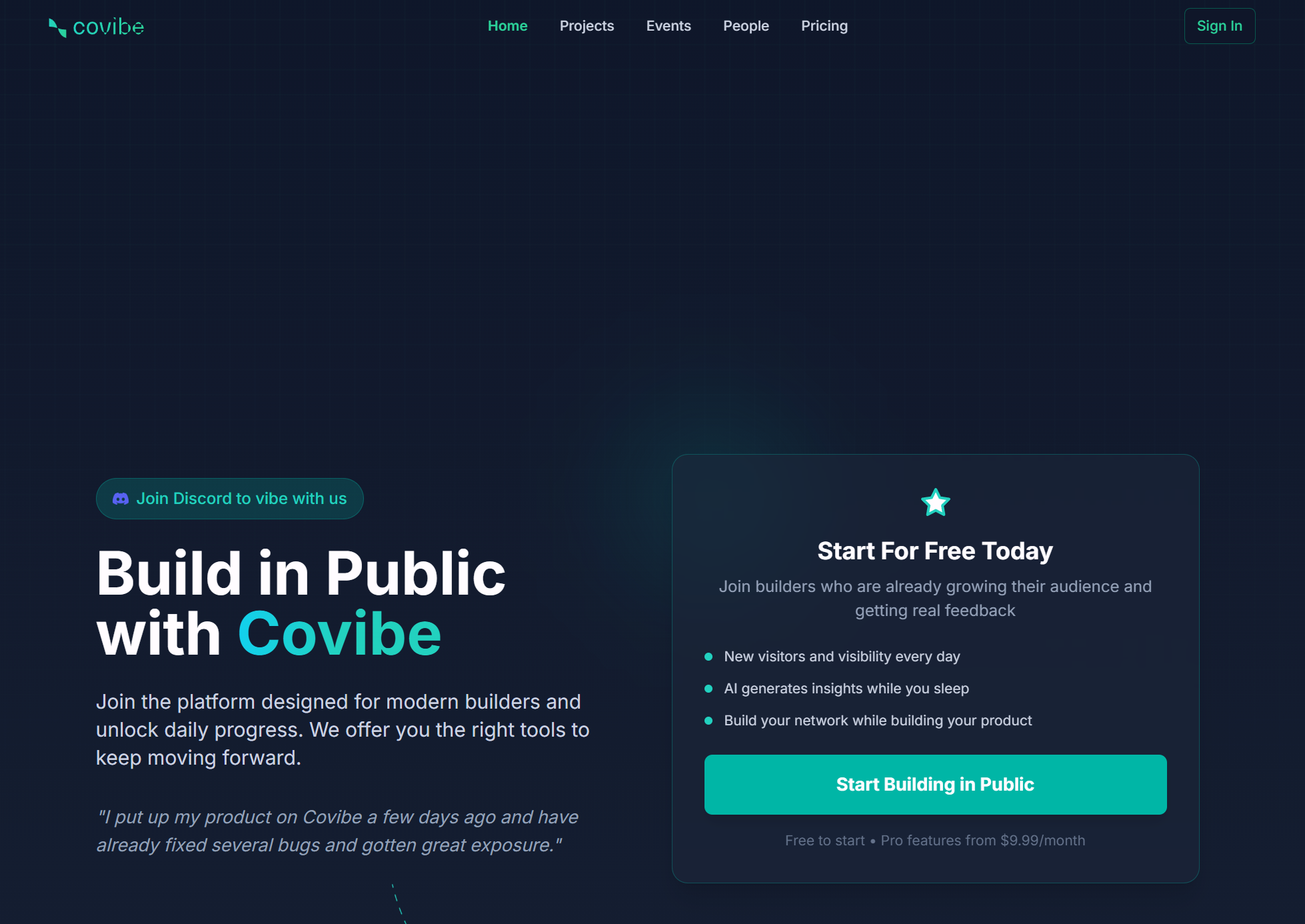 Covibe是一款为builder社区提供的平台,帮助开发者解决项目中的困难,提供技术支持和销售渠道。