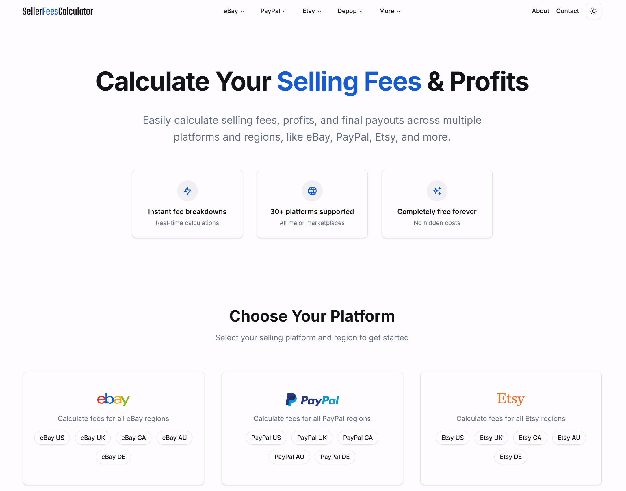 SellerFeesCalculator是一款免费的在线费用计算工具,支持30多个平台(如eBay、PayPal、Etsy等),提供即时费用明细、准确利润估算和最终付款预测。