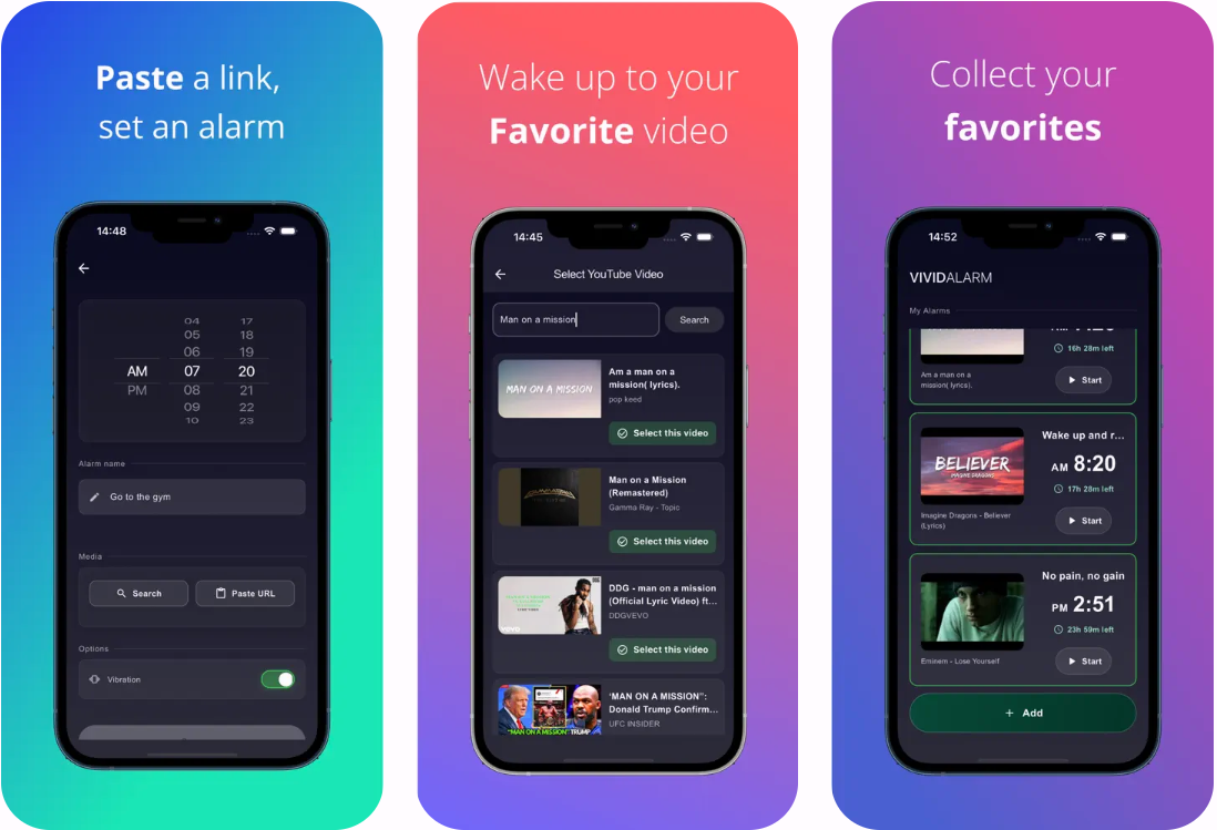 VividAlarm是一款免费无广告的iOS视频闹钟应用,允许用户使用YouTube视频作为闹铃。