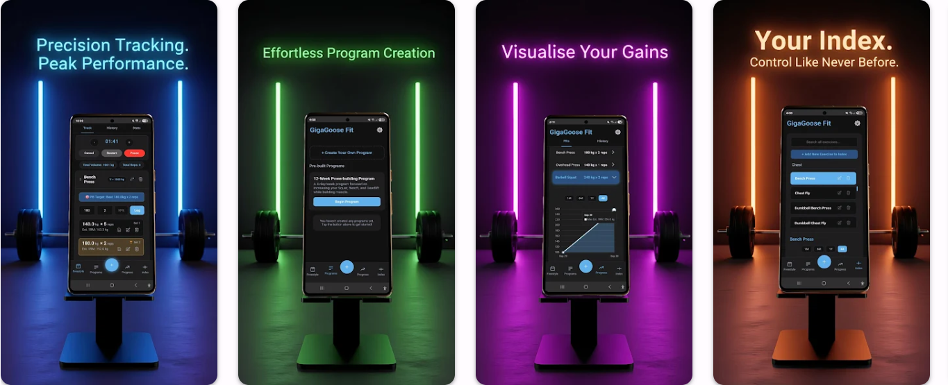 Giga Goose Fit是一款锻炼追踪应用,现代历史记录、拖放排序功能,旨在提供简洁高效的健身日志体验。