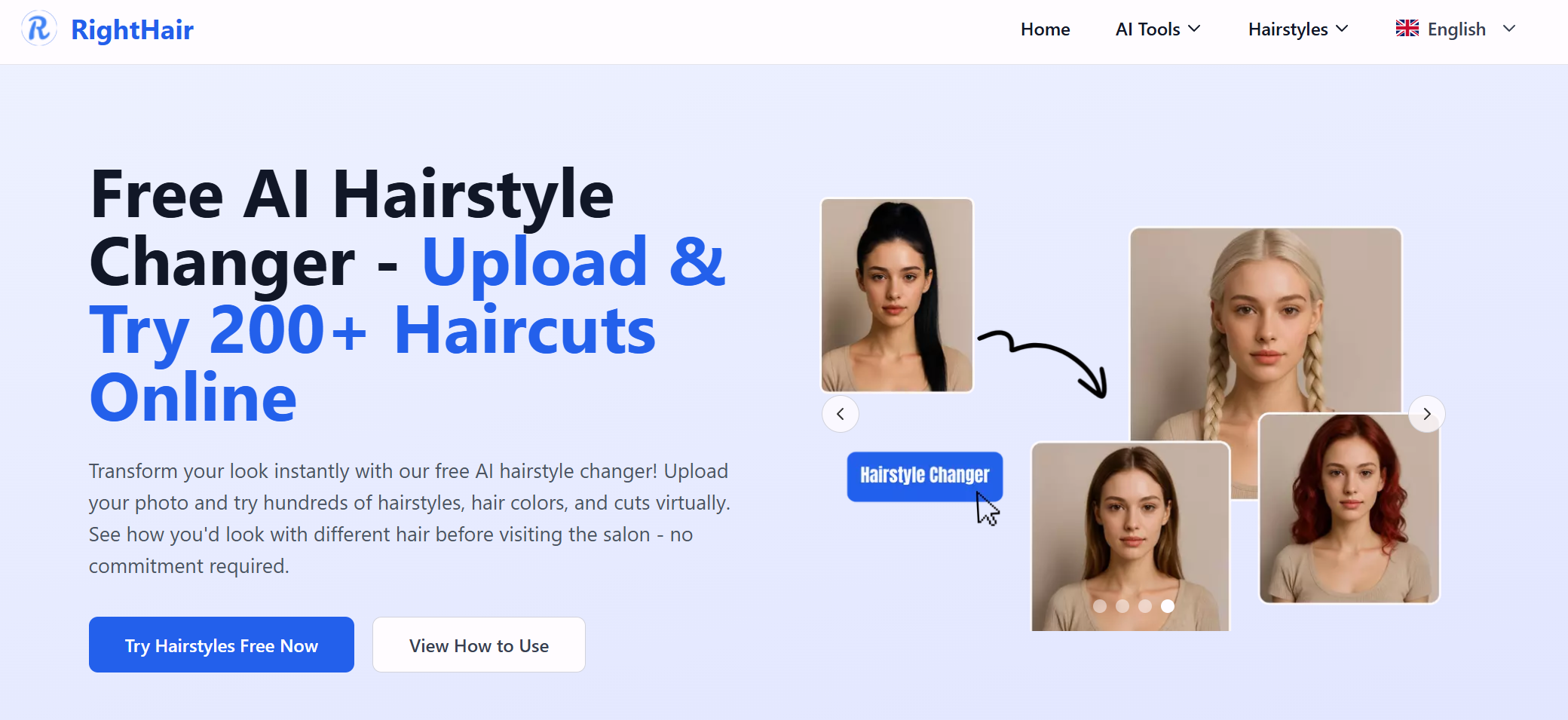 RightHair是一款免费的在线AI工具,允许用户上传照片,生成超过200种发型和发色的真实预览,并提供脸型分析和虚拟染发等功能。