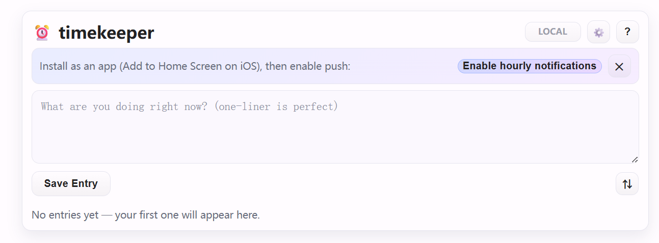Timekeeper是一款简单的PWA应用,每小时提醒用户记录正在做的事情,无需账户和后端,支持离线工作和可选的云同步。