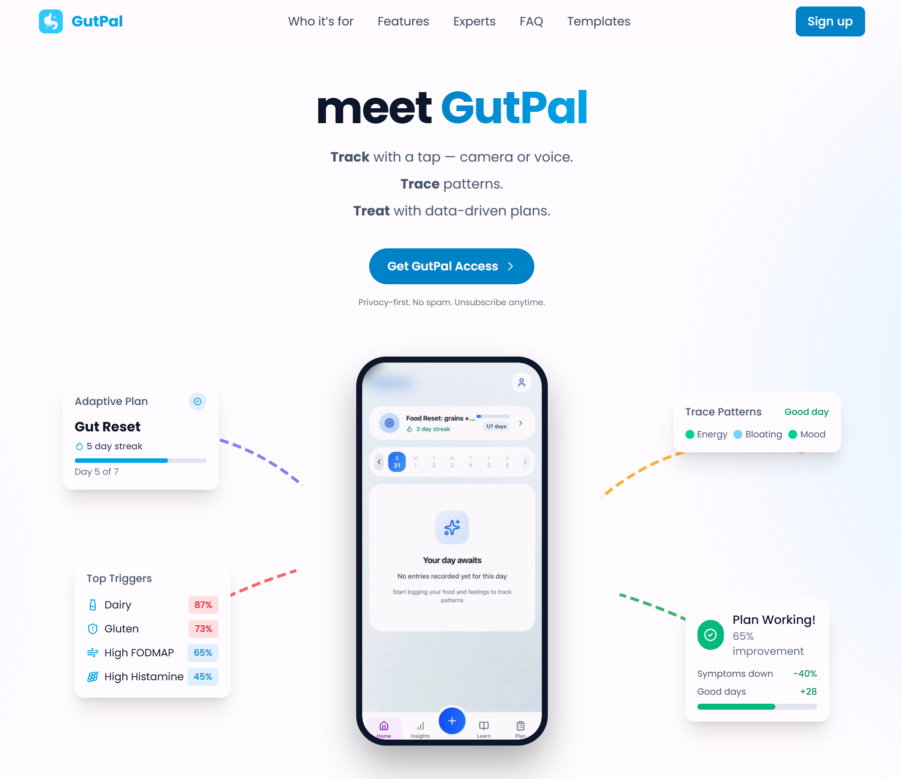 Gutzy是一款肠道健康追踪应用,利用AI快速记录饮食、症状等信息,提供个性化的健康建议和实验方案,帮助用户改善肠道健康。