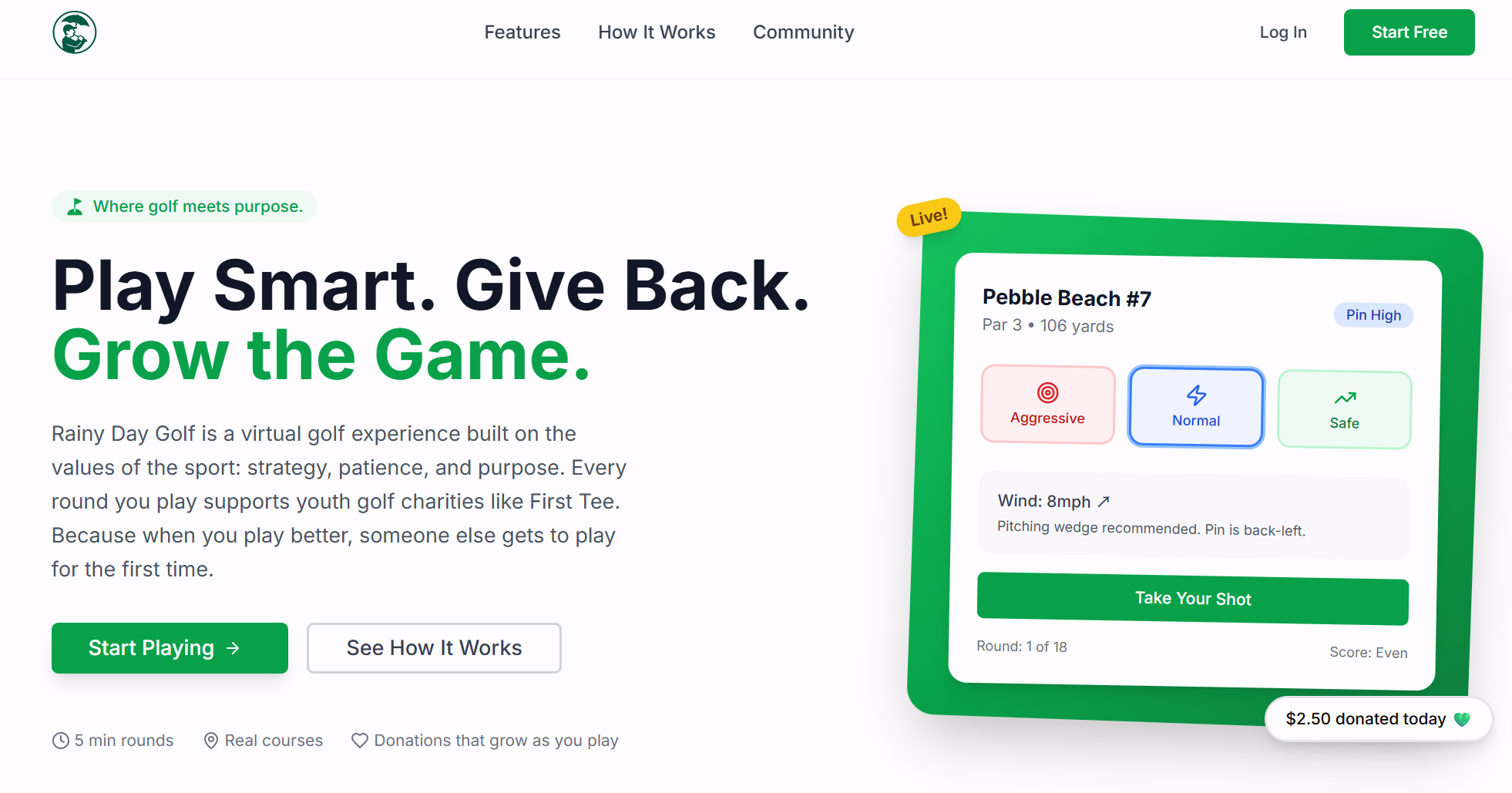 Rainy Day Golf是一款高尔夫游戏,通过AI模拟不同差点水平的击球,帮助玩家进行策略性练习。