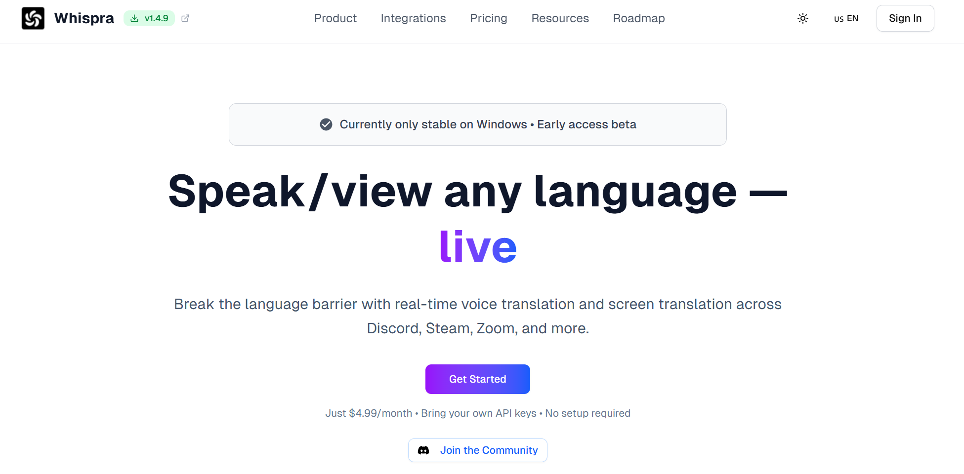 Whispra是一款AI驱动的实时游戏翻译应用,能够覆盖在PC游戏或直播上,提供聊天、对话和屏幕文本的实时翻译。