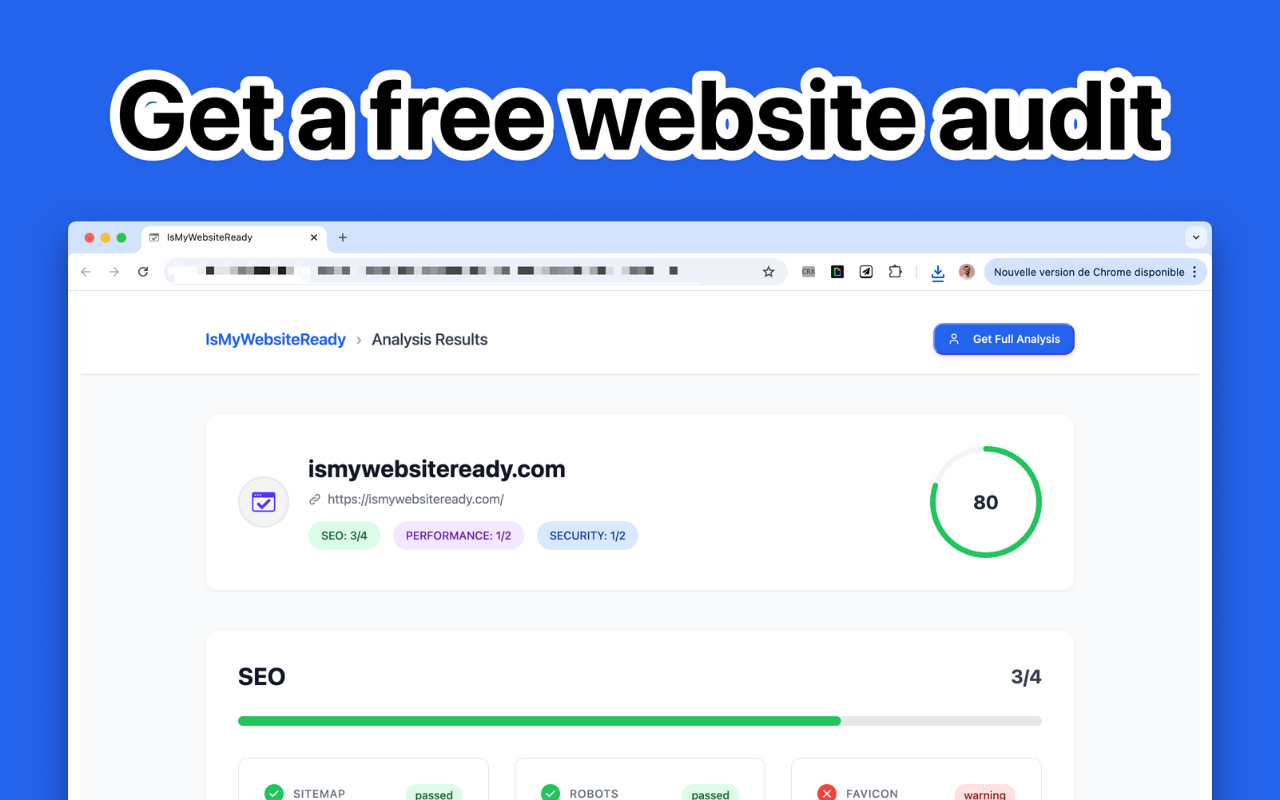 Is My Website Ready是一款免费的Chrome扩展,一键检查网站状态。