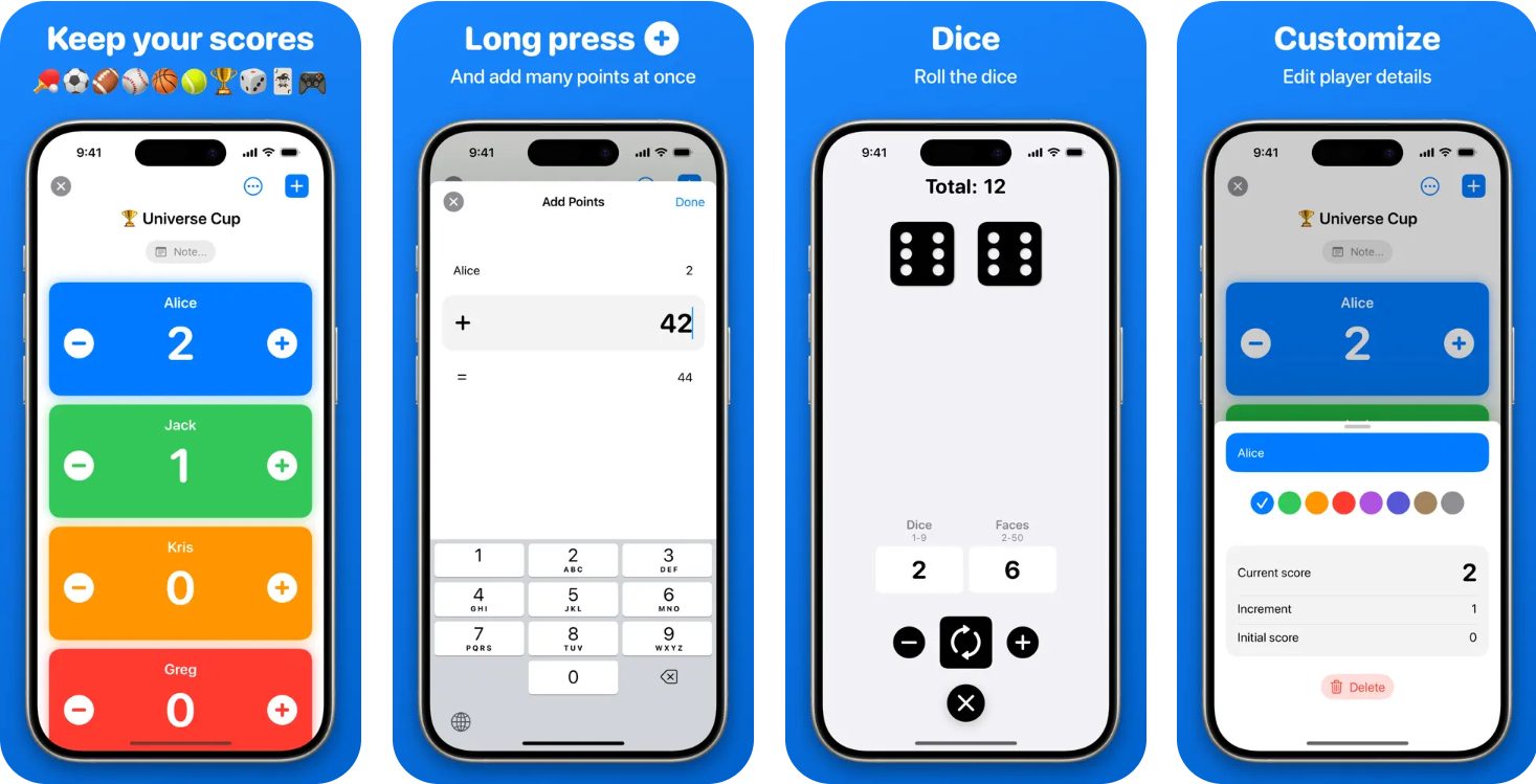 Skoro是一款记分牌应用,新增骰子功能,支持多种语言和VoiceOver。