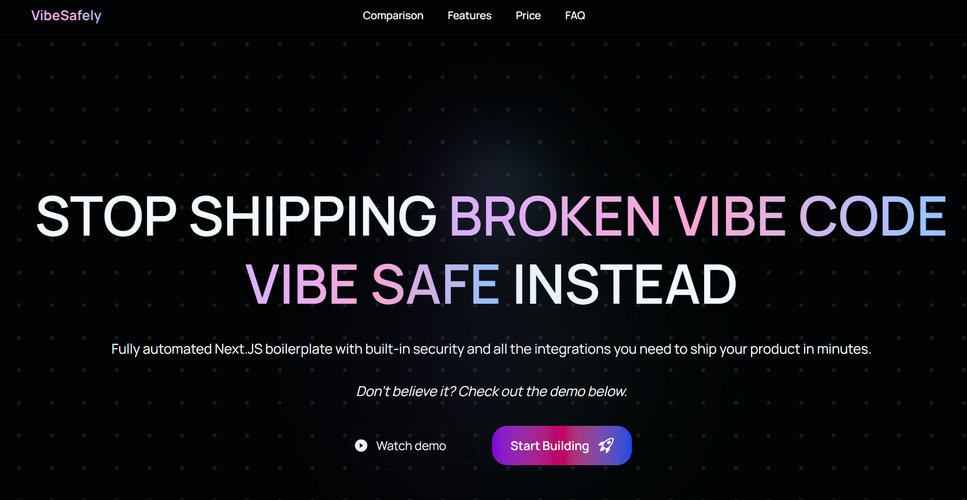 Vibesafely是一款SaaS软件,快速构建应用并内置数据库加密功能,支持一键自动部署到Vercel。