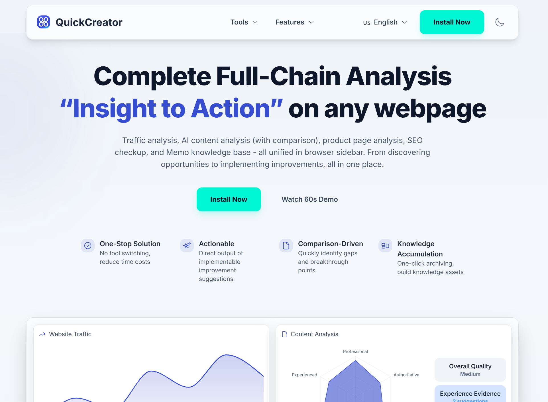 ContentAnalysis是一款AI内容质量和SEO检查工具,能够快速评估网页的可读性、结构、E-E-A-T信号和页面SEO基础,并提供优先级改进建议。