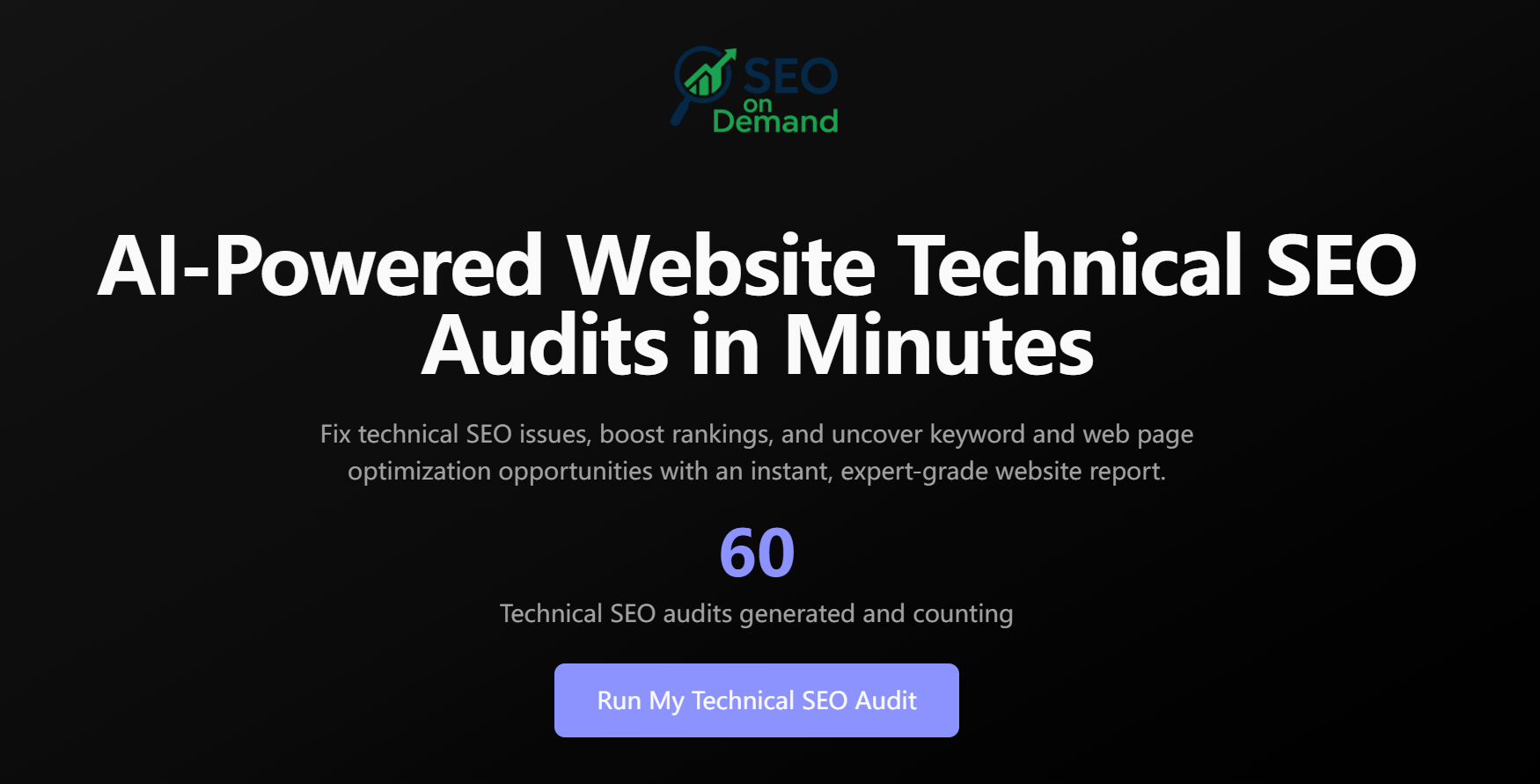 SEOOnDemand是一款自动化工具,能够生成网站的技术SEO审计报告,旨在帮助预算有限的个人和需要节省时间的机构进行网站健康检查。