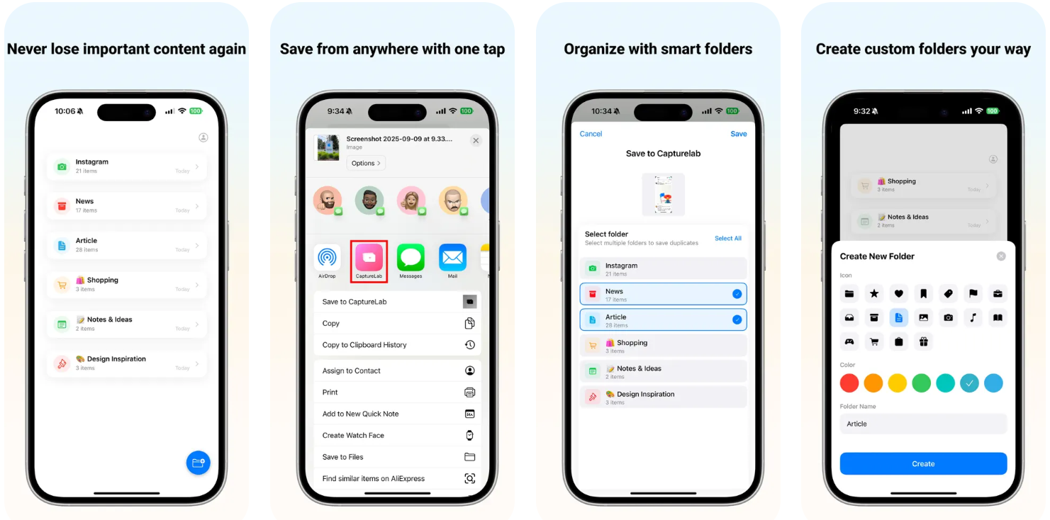 CaptureLab是一款iOS应用,允许用户在截屏后立即组织和分类截图,避免了截图混乱的问题。
