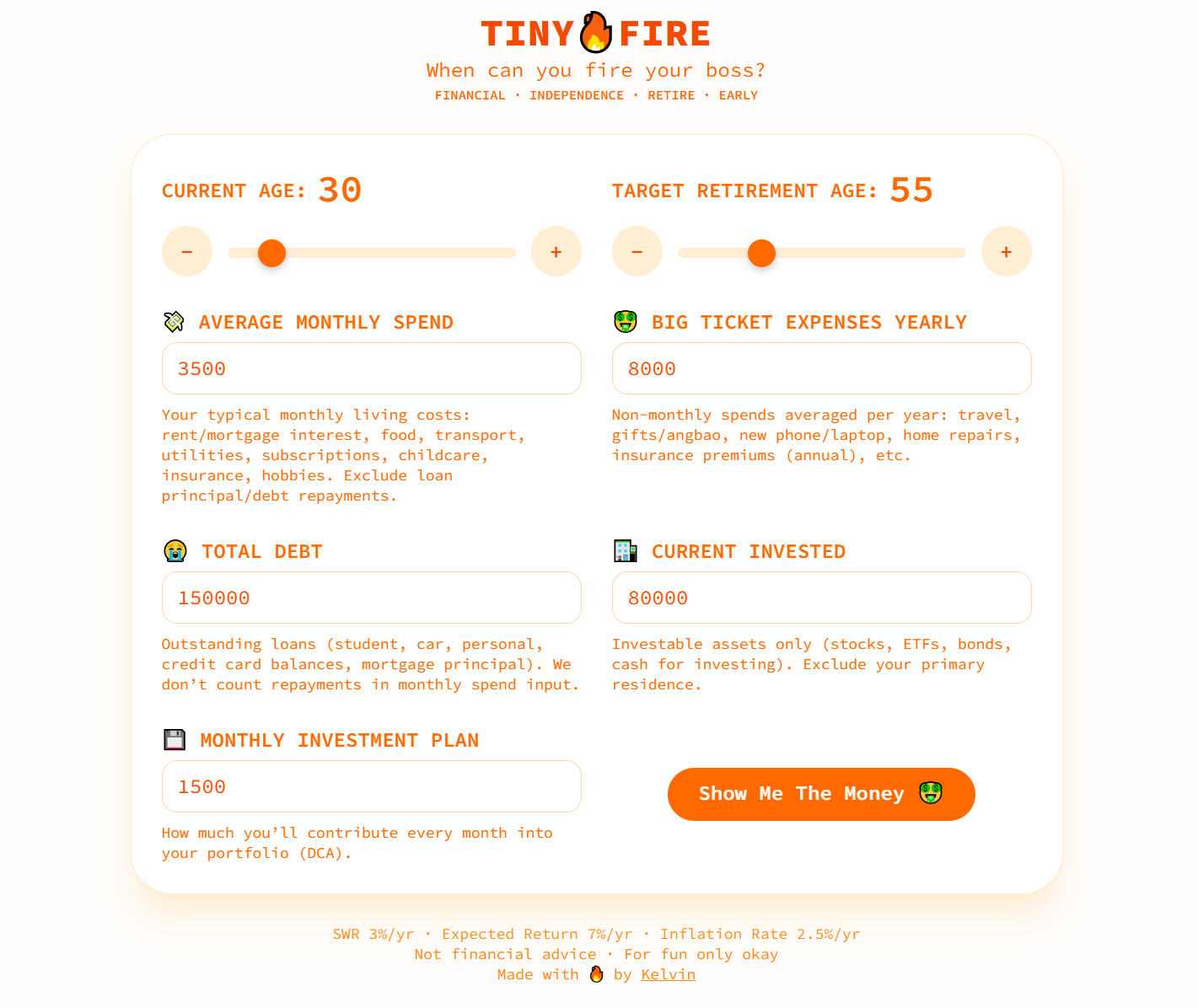 Super Lazy FIRE Calculator是一款极简的财务自由计算工具,只需回答6个简单问题即可快速获得结果,无需繁琐的表单和注册。