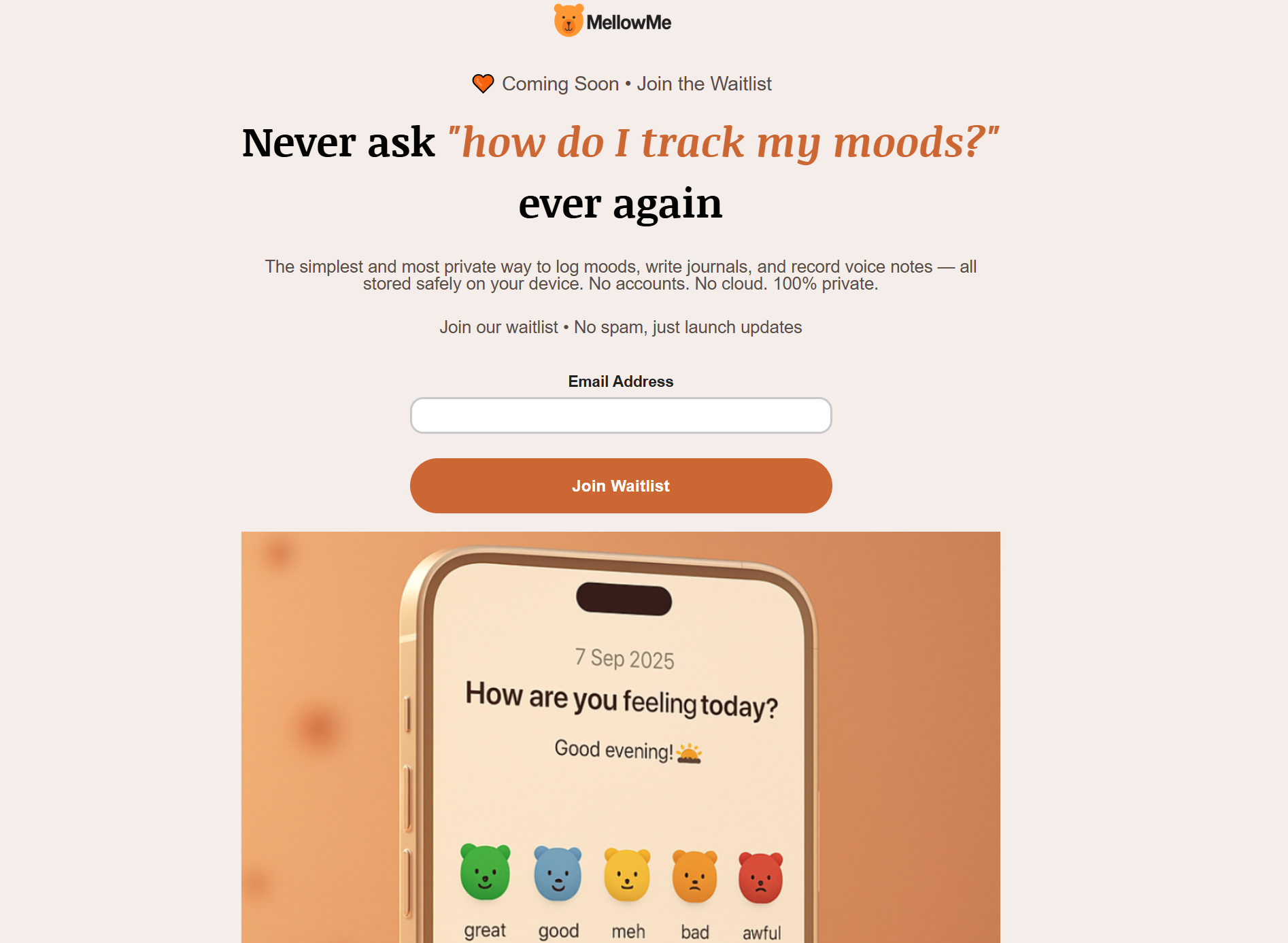 MellowMe是一款100%私密的情绪日记应用,简单的一键心情记录、语音日记、AI反思和聊天式搜索。