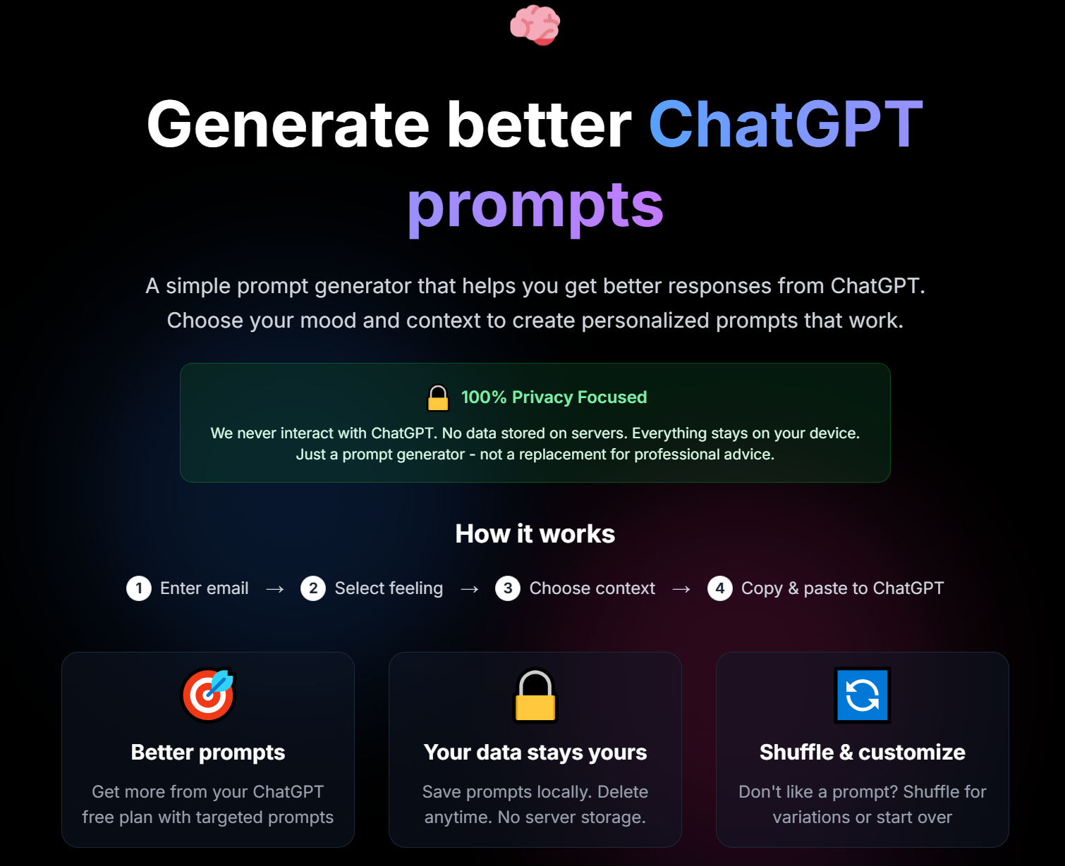 Tap-to-Tone是一款PWA应用,根据用户的心情改写ChatGPT提示语,确保无登录、无数据追踪,所有数据本地存储。