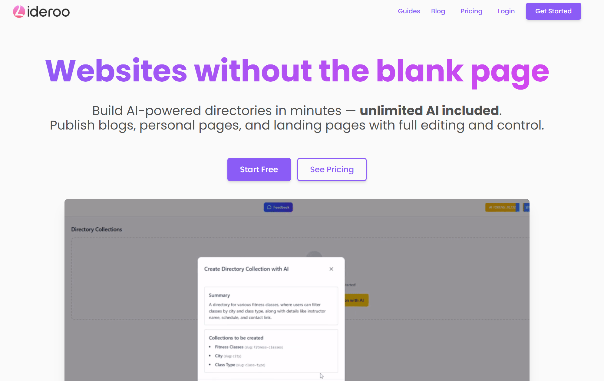 Lideroo是一个AI驱动的网站构建器,专注于博客和目录网站的搭建。