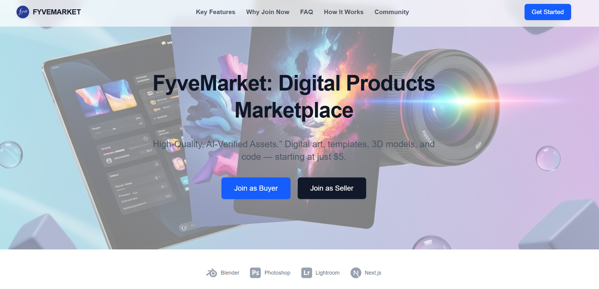 FyveMarket是一个数字市场,提供模板、代码、3D模型等资源。