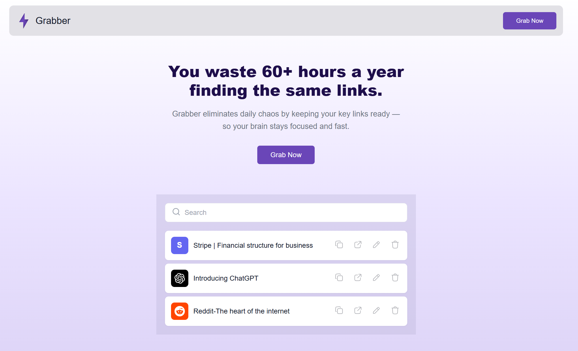 Grabber是一款链接管理工具,一键保存和获取链接,旨在提高独立开发者、社交媒体经理和研究者的工作效率。