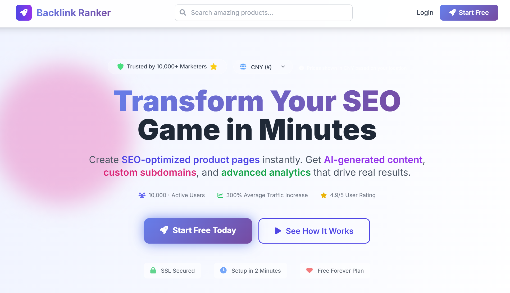 BacklinkRanker是一款快速反向链接页面生成器,通过添加产品/网站生成SEO友好的页面,以获取反向链接和提高可见性。