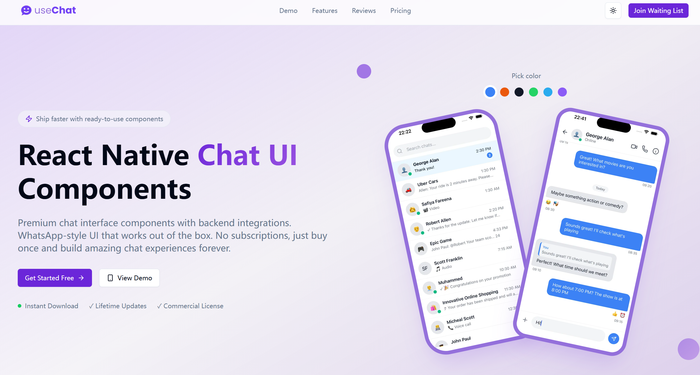 UseChat是一款React Native高级聊天SDK,提供聊天UI组件和后端集成,极大简化聊天功能开发。