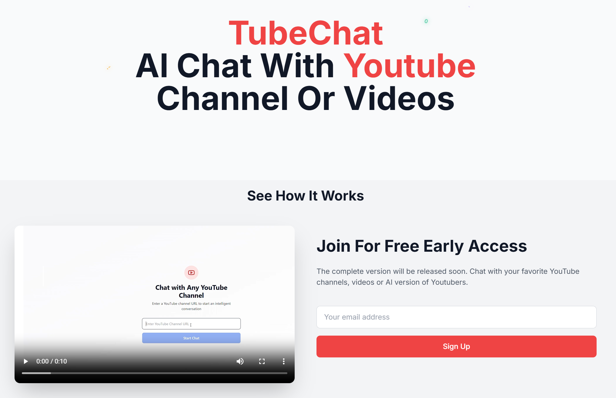 Tubechatai是一款AI助手应用,用户可以通过粘贴YouTube频道或视频链接生成转录,并与模拟该创作者风格的AI助手进行聊天。