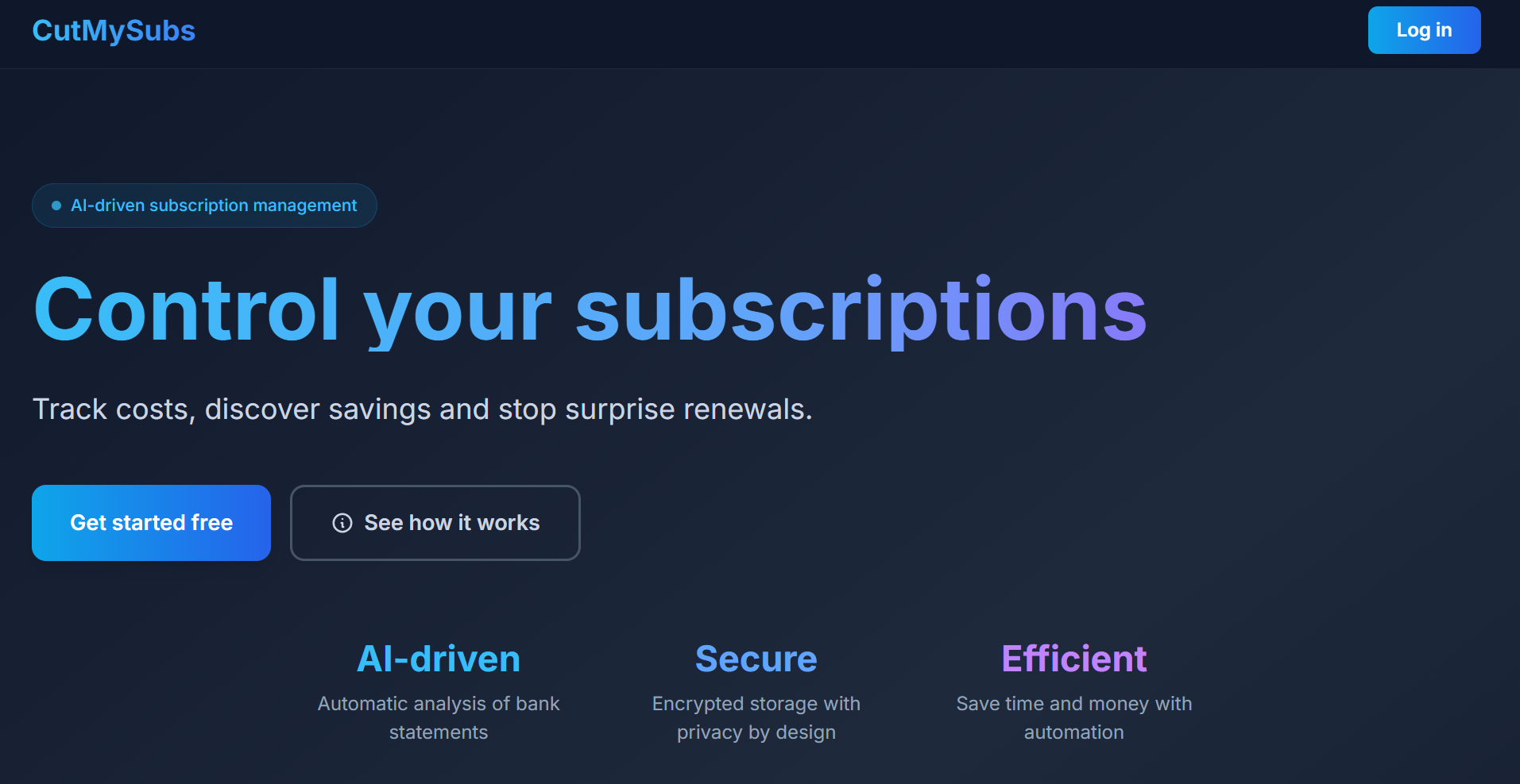 CutMySubs是一款订阅跟踪工具,集中管理用户的订阅信息并提供续订提醒,帮助用户避免意外收费。