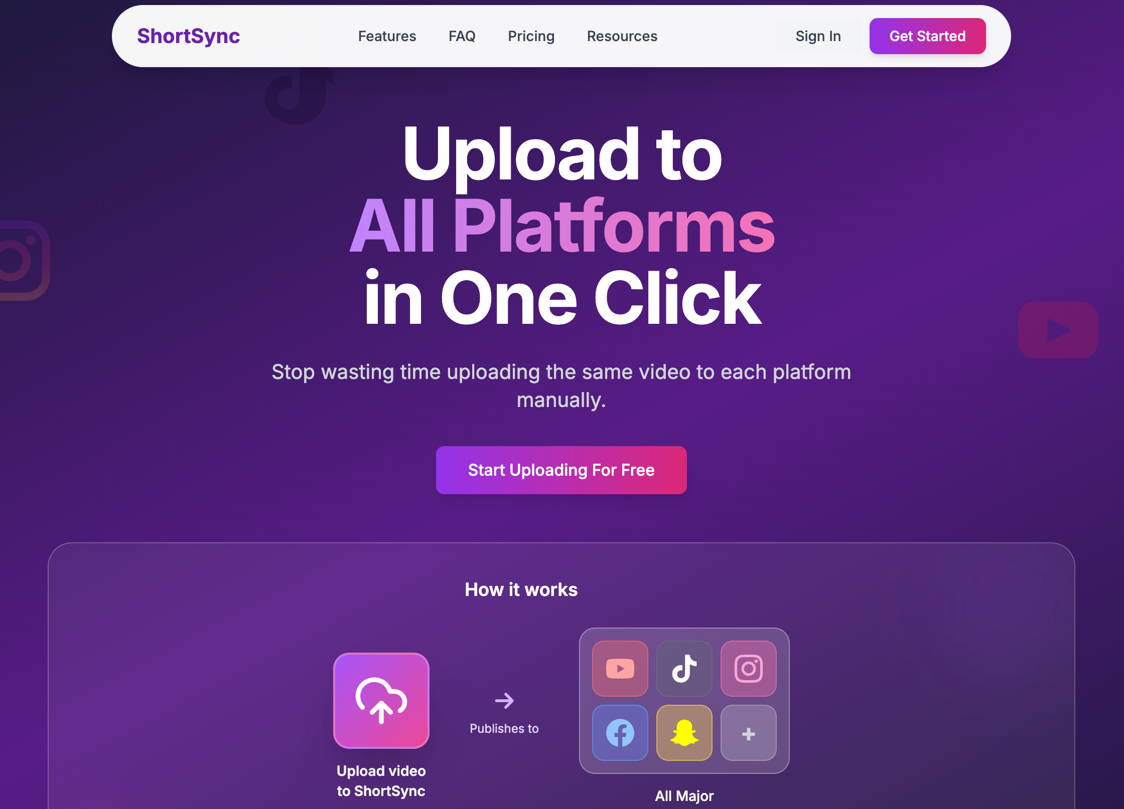 shortsync是一款短视频内容发布自动化工具,允许创作者上传一次内容并同时发布到所有主要平台。